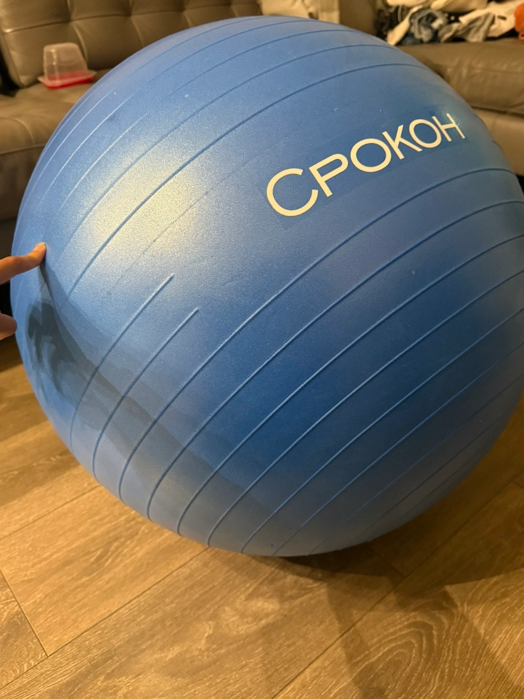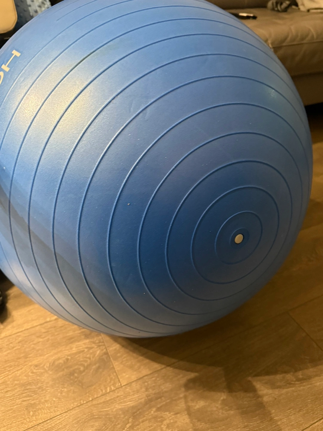 302Blue exercise ball. Great for workouts, yoga, and stretching.