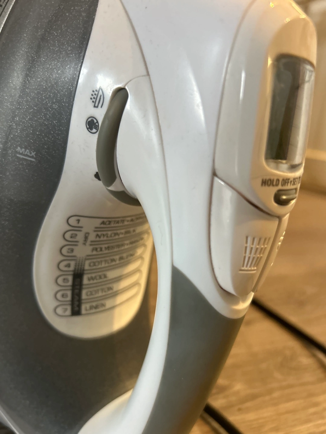 237Iron with a cord and various heat settings. Includes a steam function but needs fixing for steam. Perfectly fine for just ironing. Take offers.
