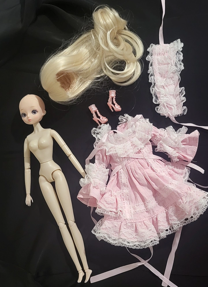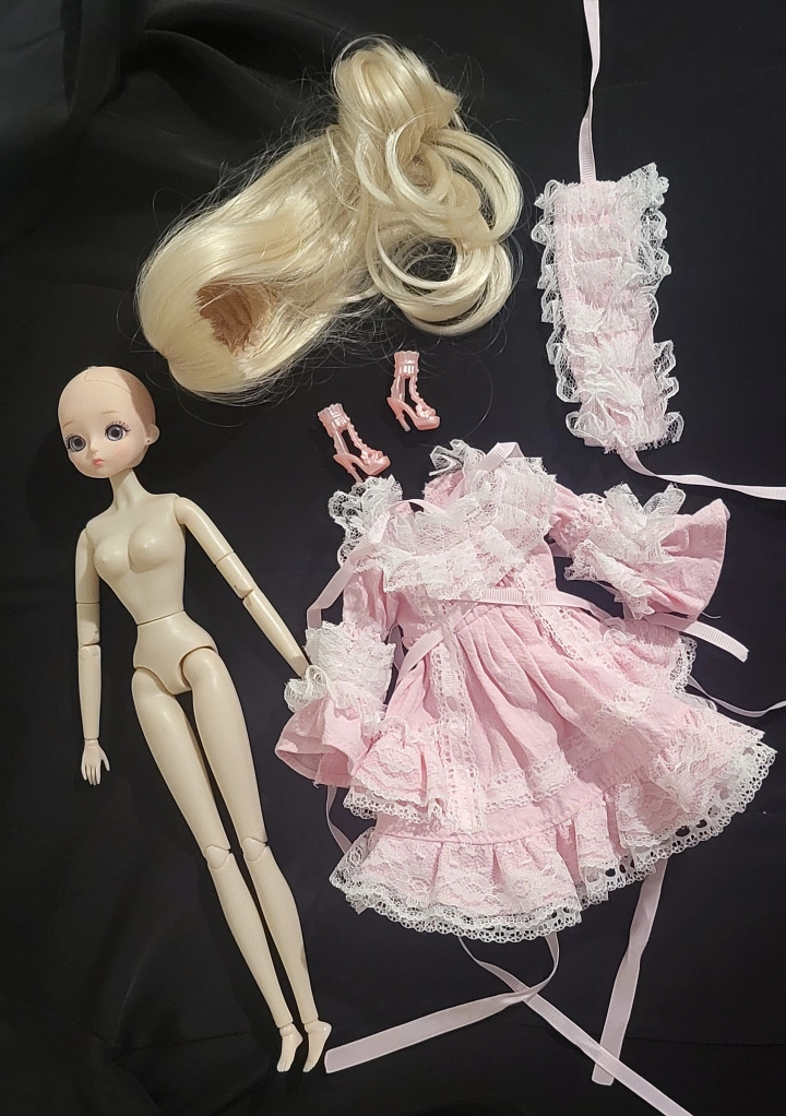 Set includes : doll, dress, shoes, headband (pls see pictures), wig.