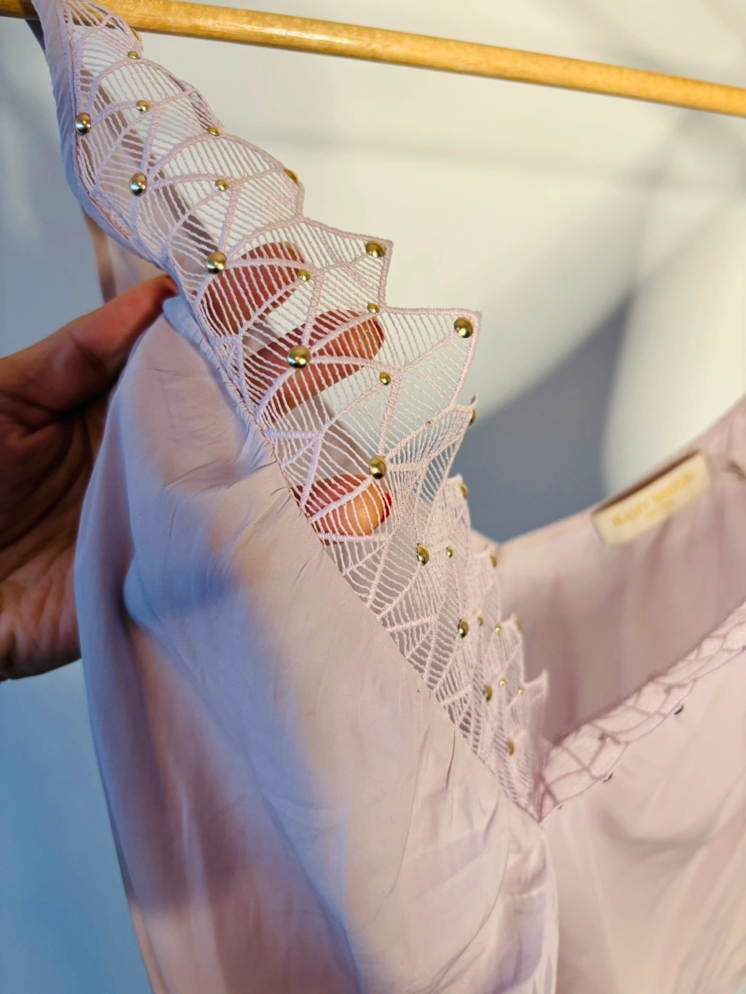 135Lightweight lavender top with gold accents. Strapless with a flattering deep v-neck.