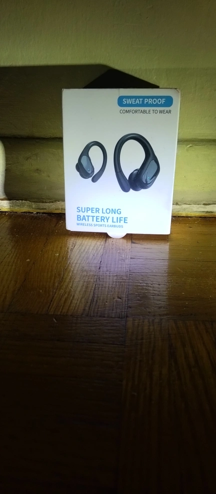 Wireless Bluetooth earbuds with a long battery life. Sweat proof and comfortable to wear.