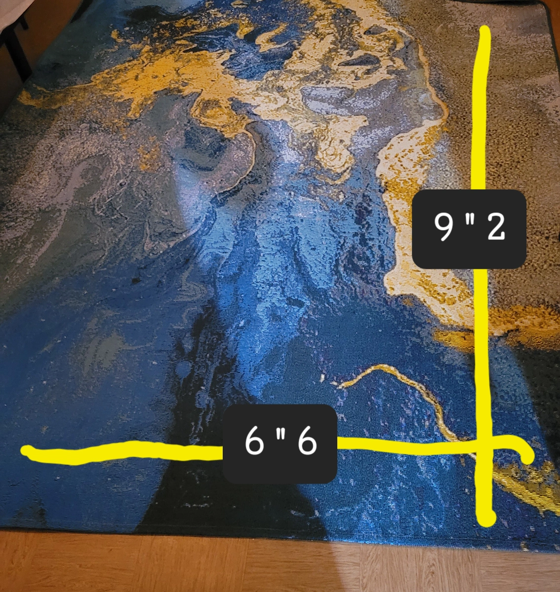 almost completely new. its only been stepped on a few times in so cks. used indoors only. bought it on sale as it was rolled up. been using it as an area rug, but its too big for the space.