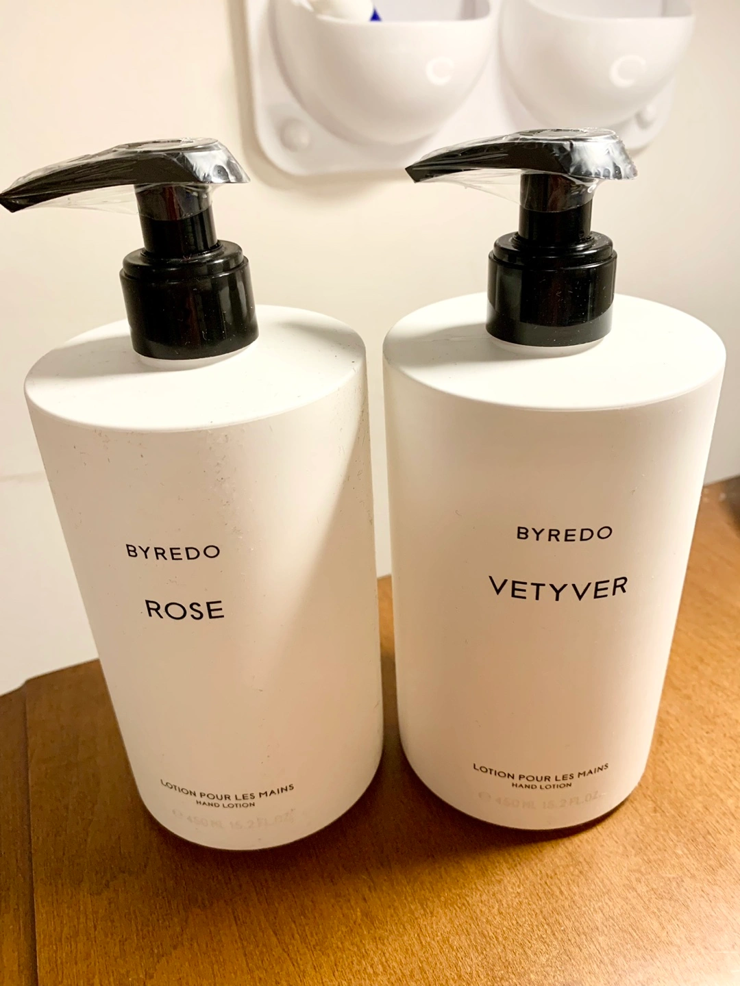 130Two bottles of Byredo hand lotion, one Rose and one Vetiver. Both are 150 ml.