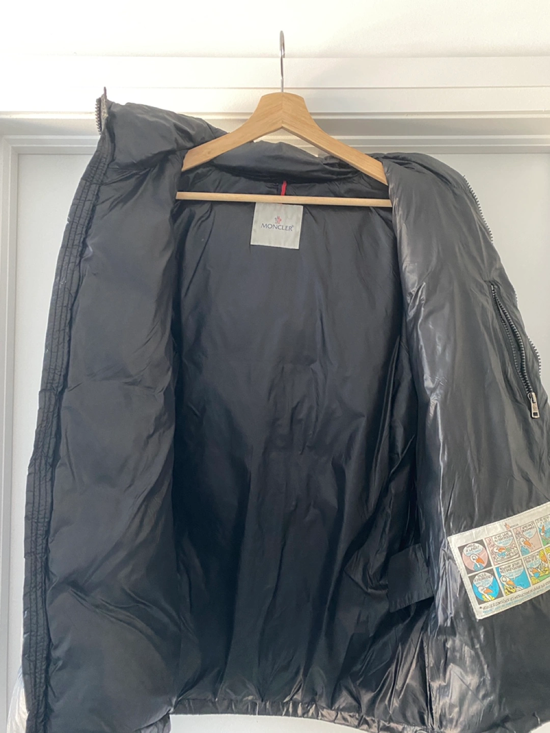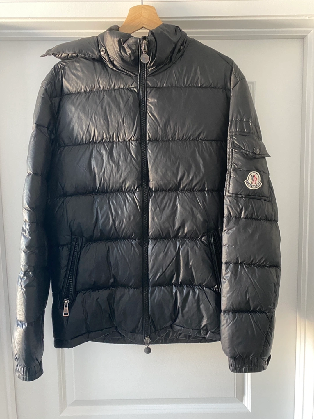 Black puffer jacket with a hood. Zipper closure. Two zippered pockets in the front. One zippered pocket on the left sleeve. Interior pockets. Black lining. Made in Romania. Size: Large Brand new Reasonable offers will not be declined Shipping available π¦β