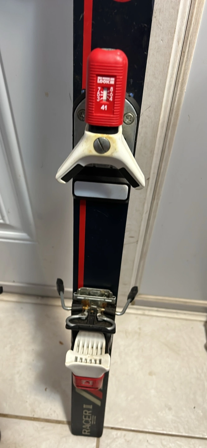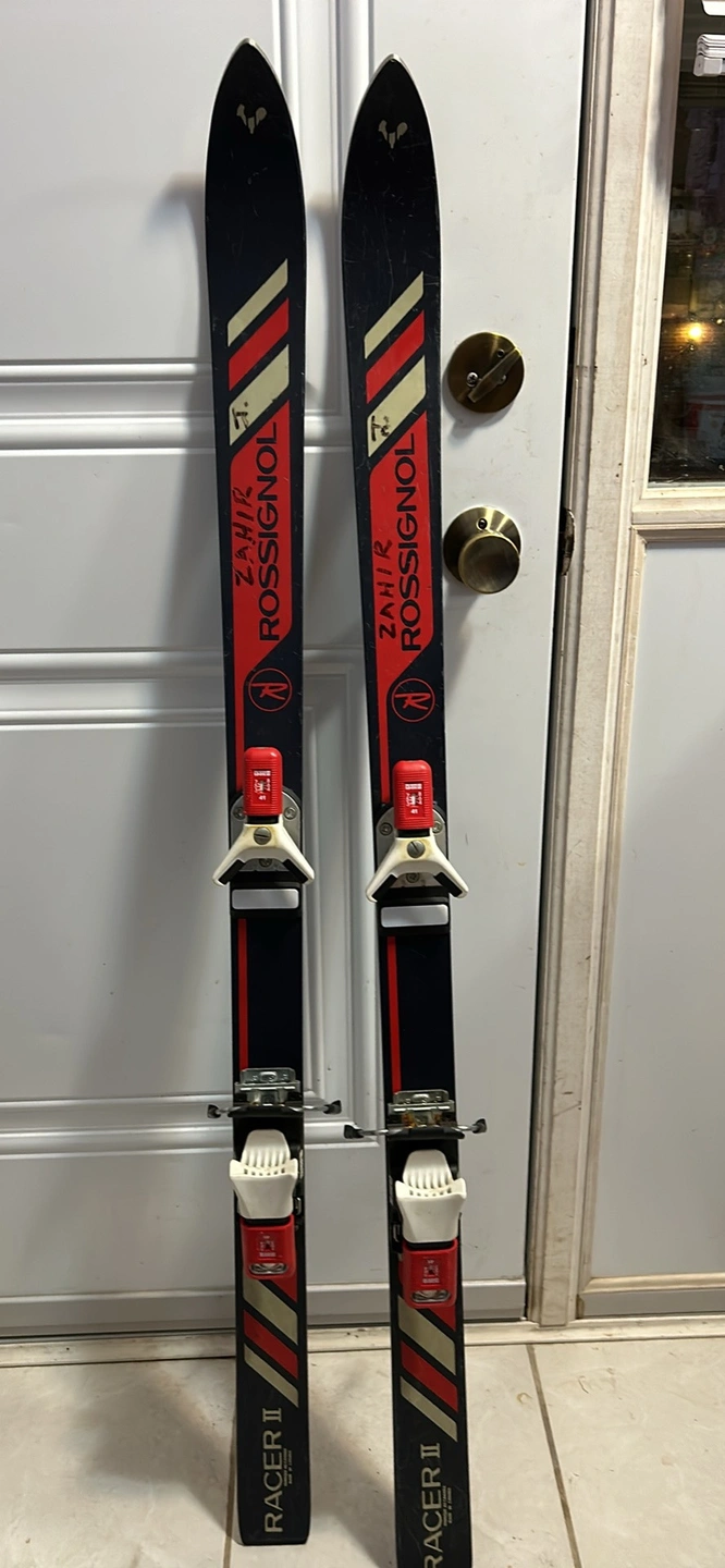 Pair of Rossignol Racer II skis with bindings. Good condition.