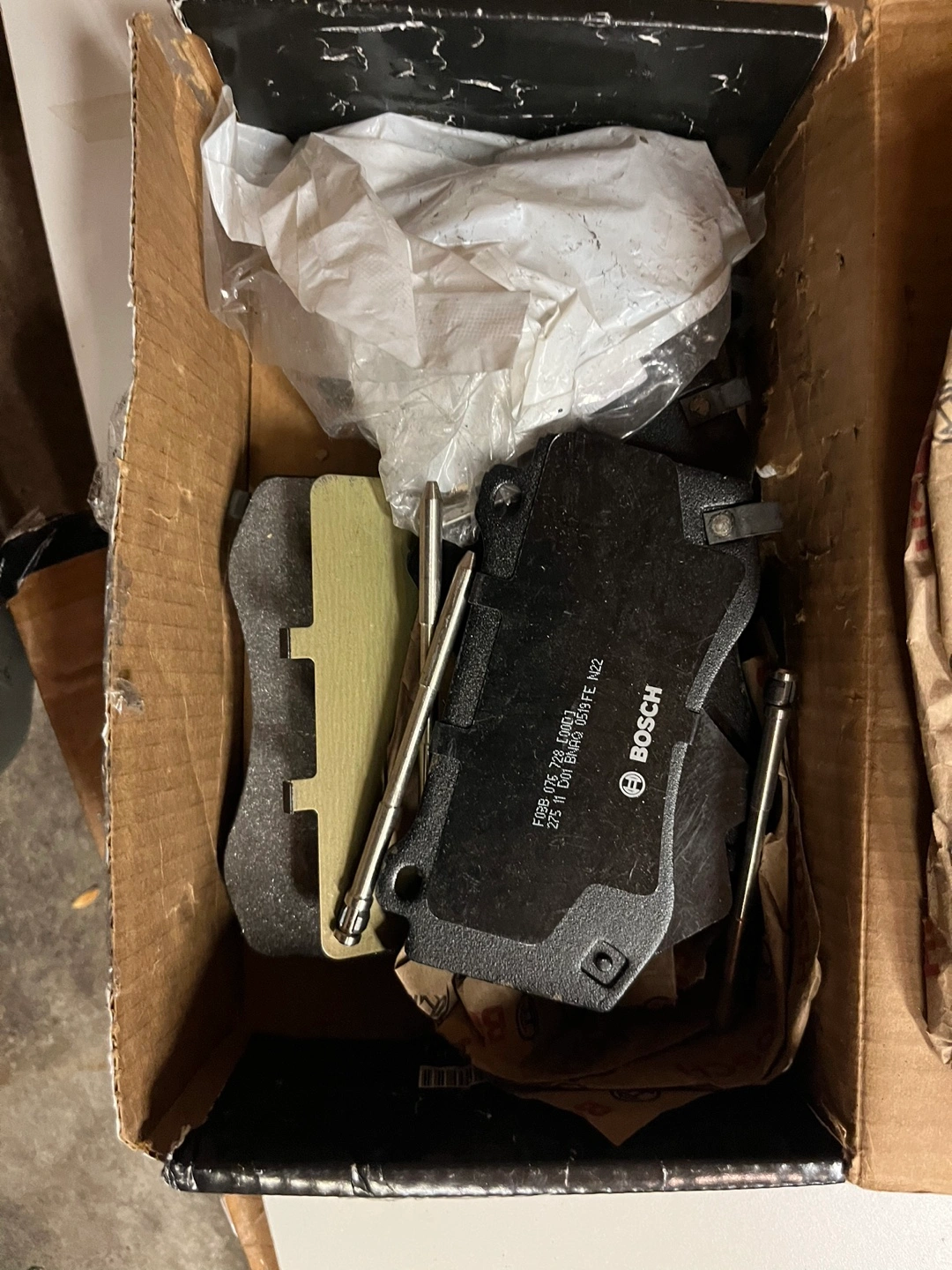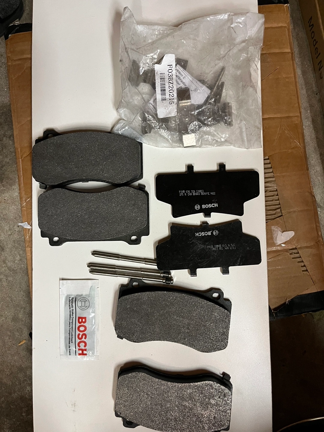 Set of brake pads and hardware. new and unused, but packaging is slightly damaged.