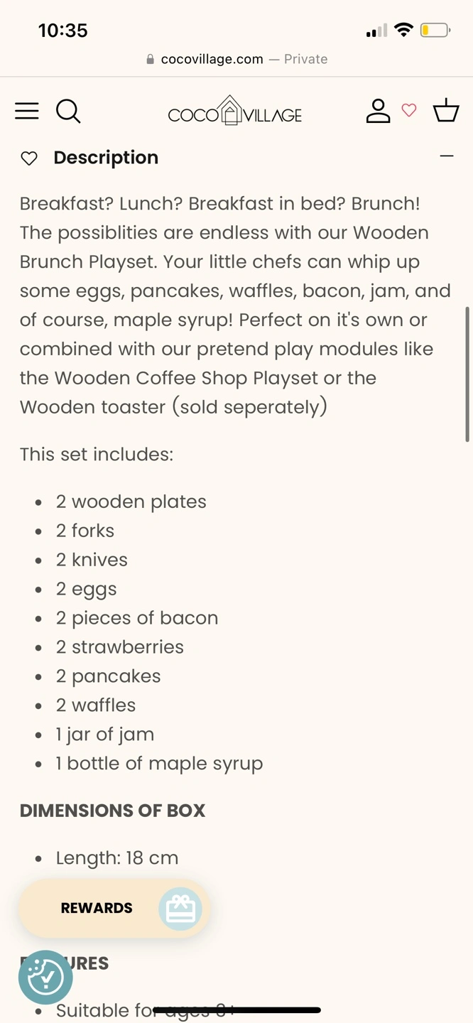 Brand new in box wooden brunch play set, comes with everything you need for breakfast playtime. Was going to give as a gift but found something else and return date has passed.