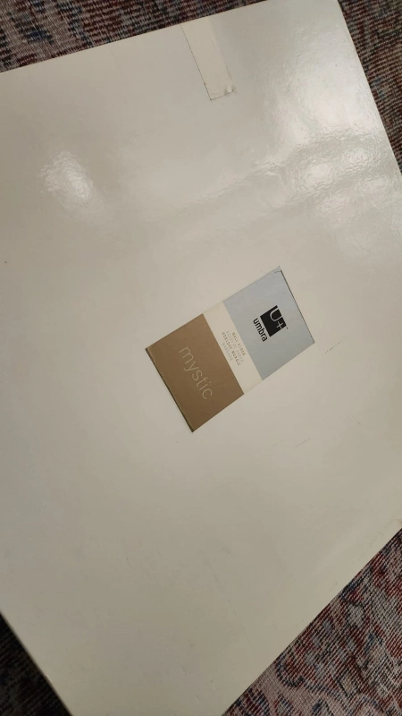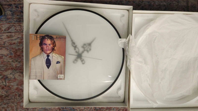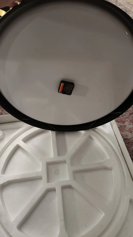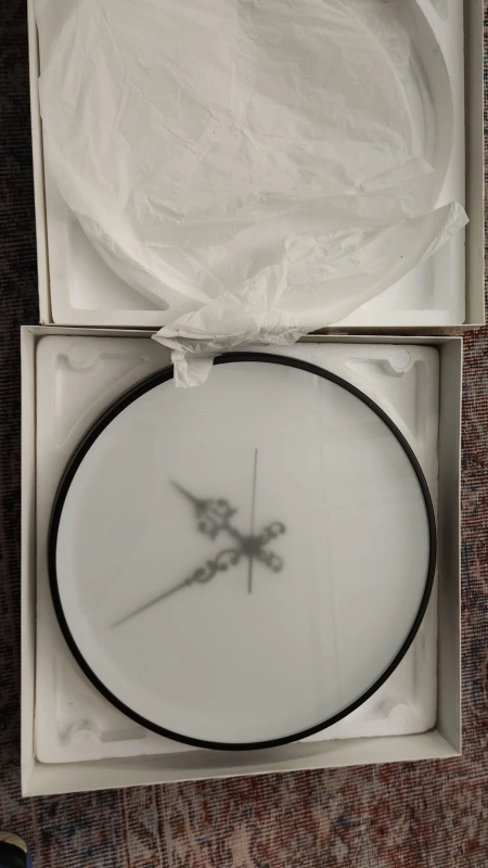 365White clock with a black frame and black hands. The clock face is frosted glass.