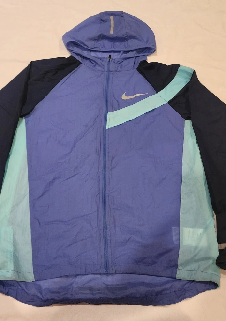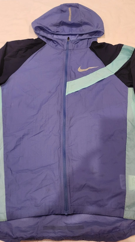 Lightweight running jacket with a hood. Blue, turquoise, and black color scheme. Zipper closure with a reflective strip on the sleeves. I lost the hood of the Millet brand windbreaker jacket. I’m selling two jackets for $10. Pick up- Moscrop Secondary School Parkinglot