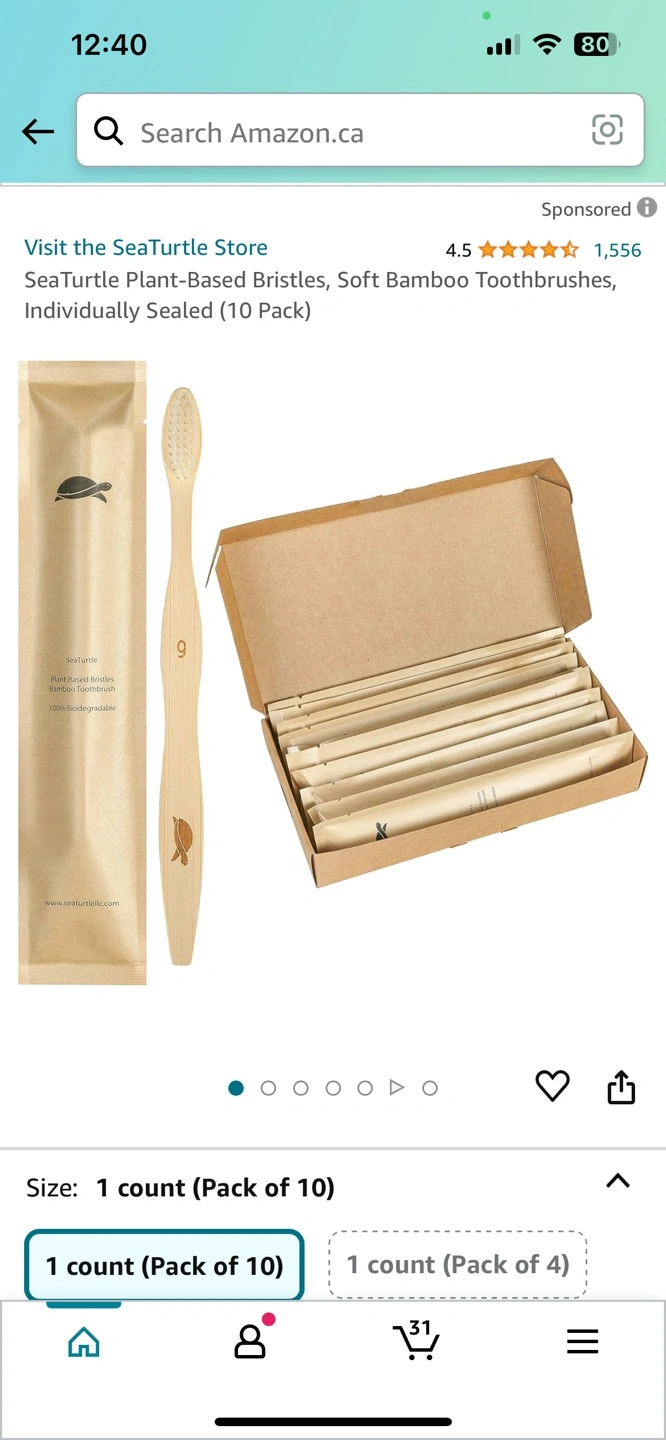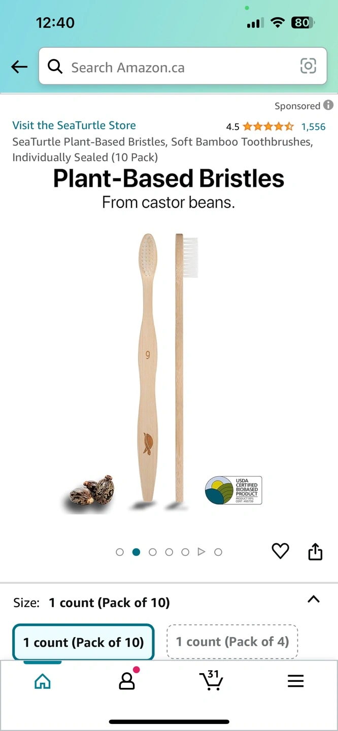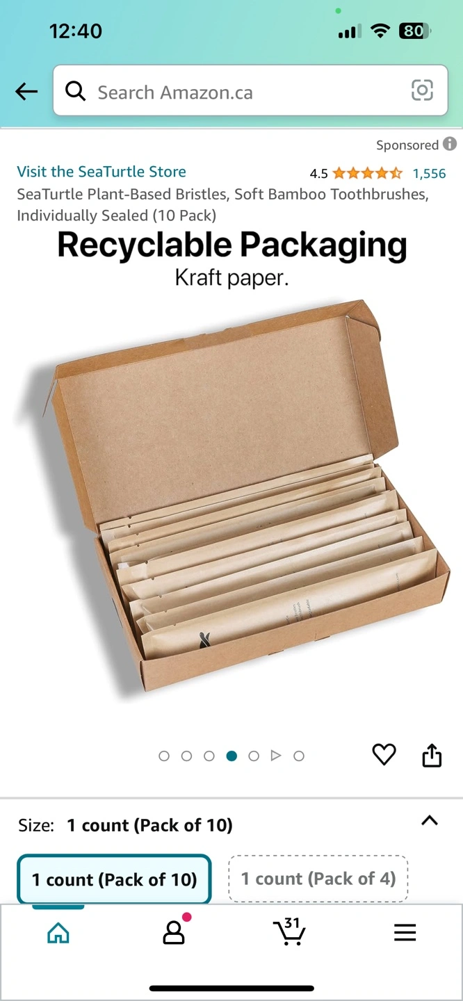 Plant-based bristles, soft bamboo toothbrushes, individually sealed. Recyclable Kraft paper packaging. New sealed box