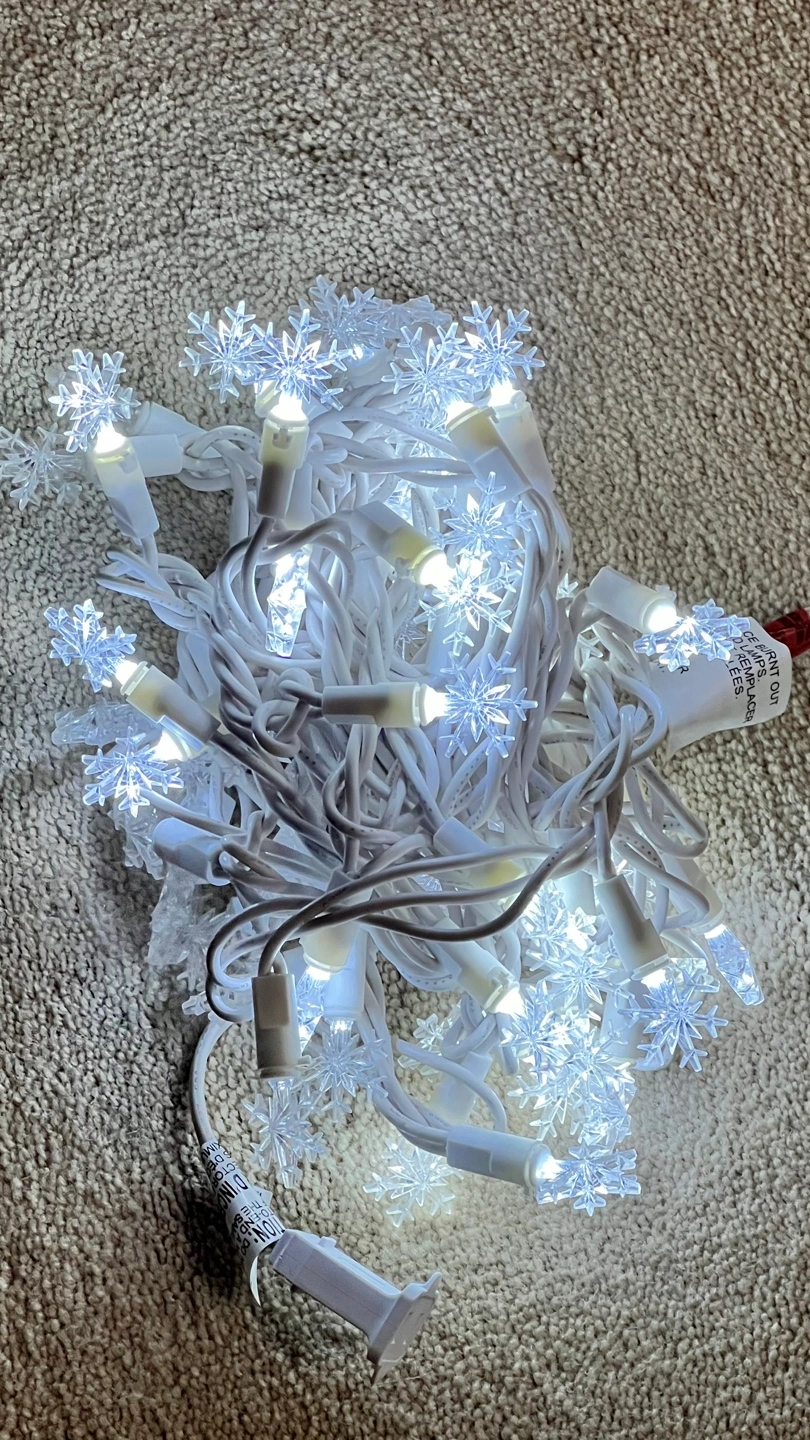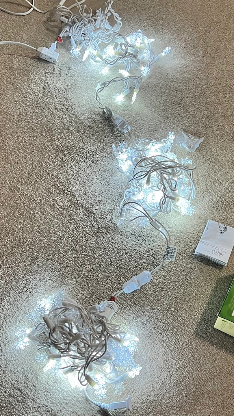 LED snowflake string lights for outdoor or indoor. These 3 sets were used, but are in good condition. 2 boxes have spare lights (total of 4), one box doesn’t have a spare light. Beautiful but fragile snowflakes. $15 for all 3 boxes No holds, sale goes to fastest pickup.