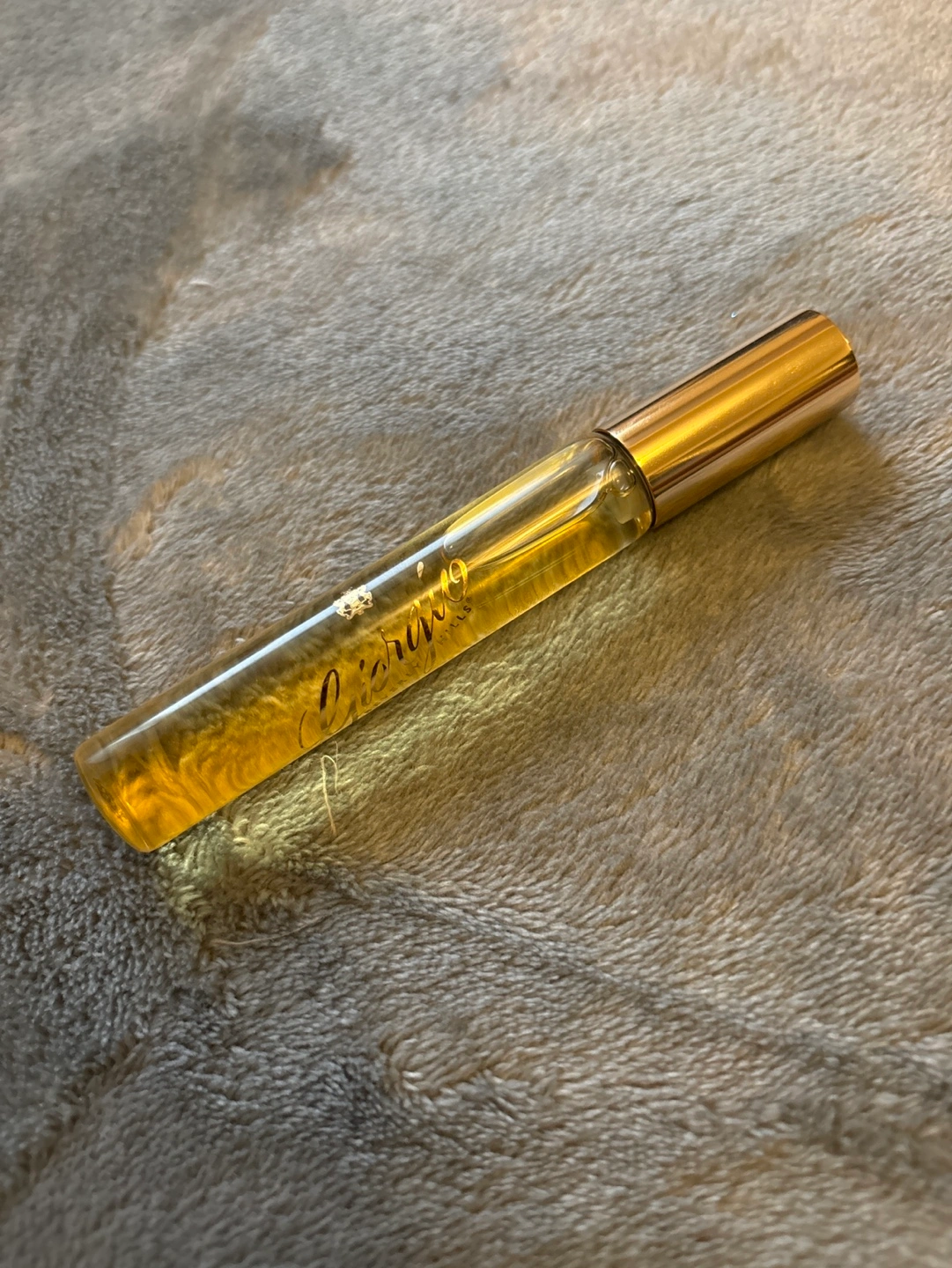Small roll-on bottle of Elizabeth Arden perfume. The bottle is mostly full.