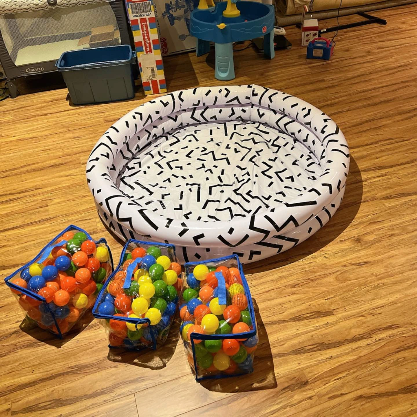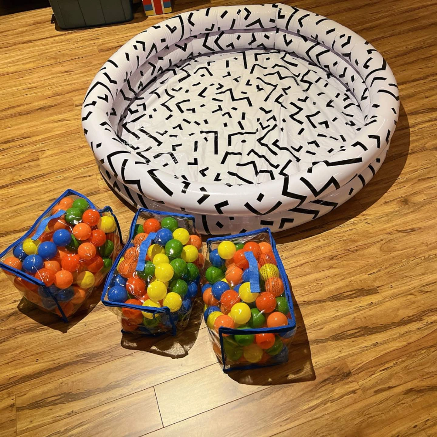 Like new inflatable pool and 300 playballs. All used only once for my toddler’s birthday party as a ball pit. Can fit 4 toddlers with balls to play no problem! You can use the pool for summer too!