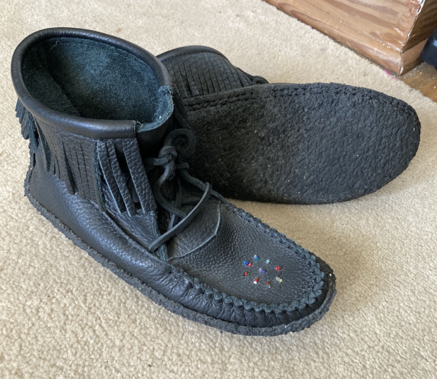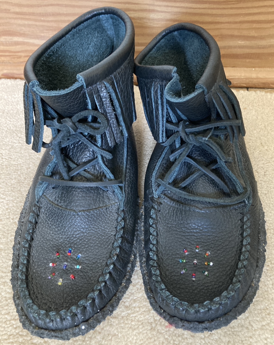 Black Leather Huron Indian Moccasins