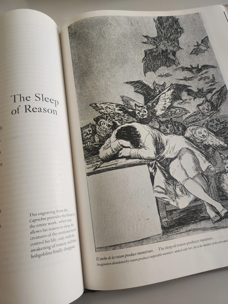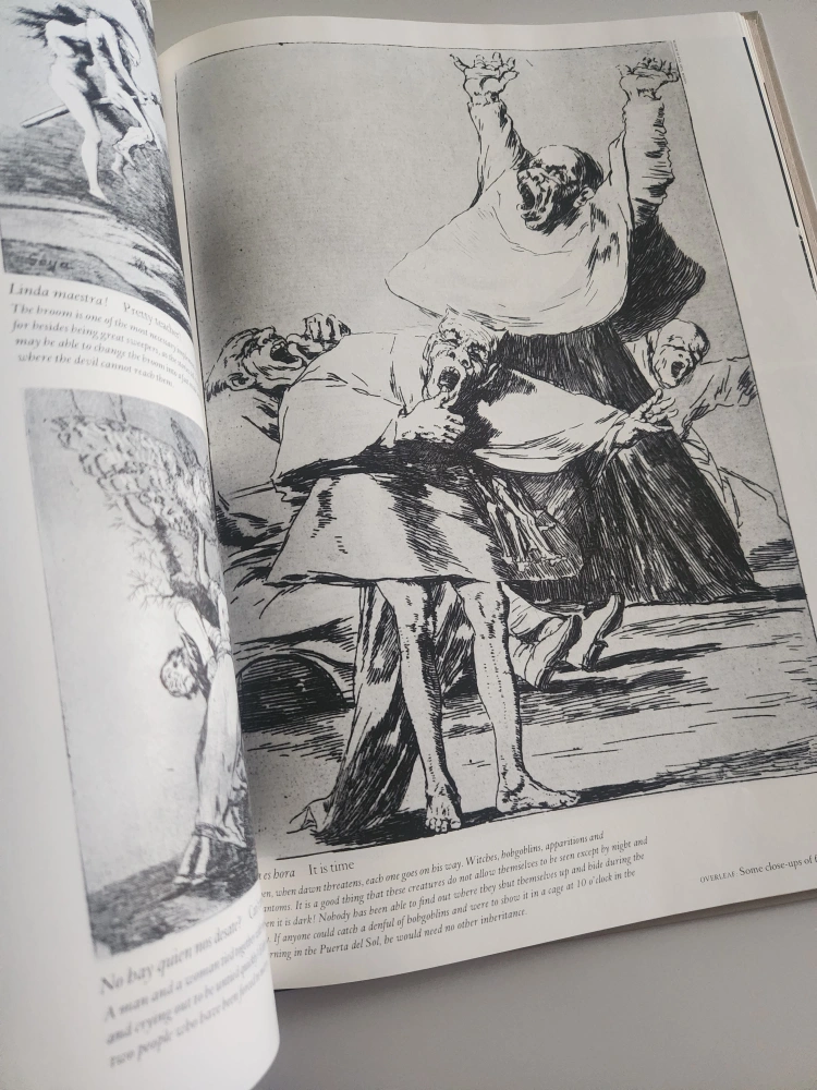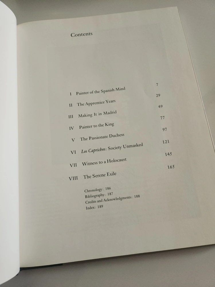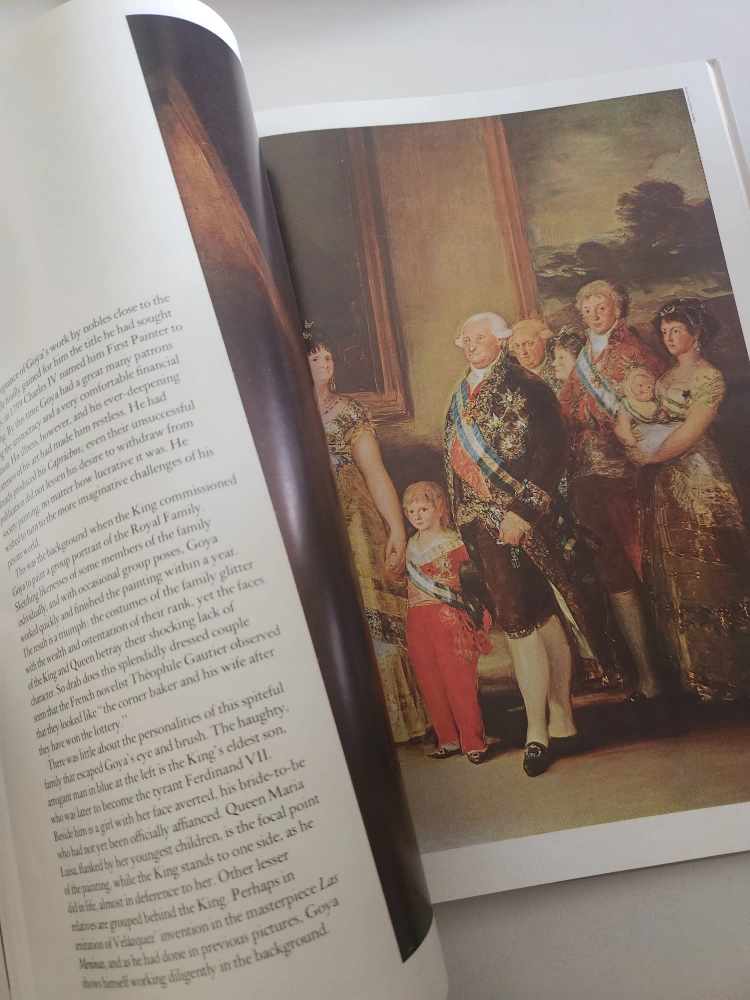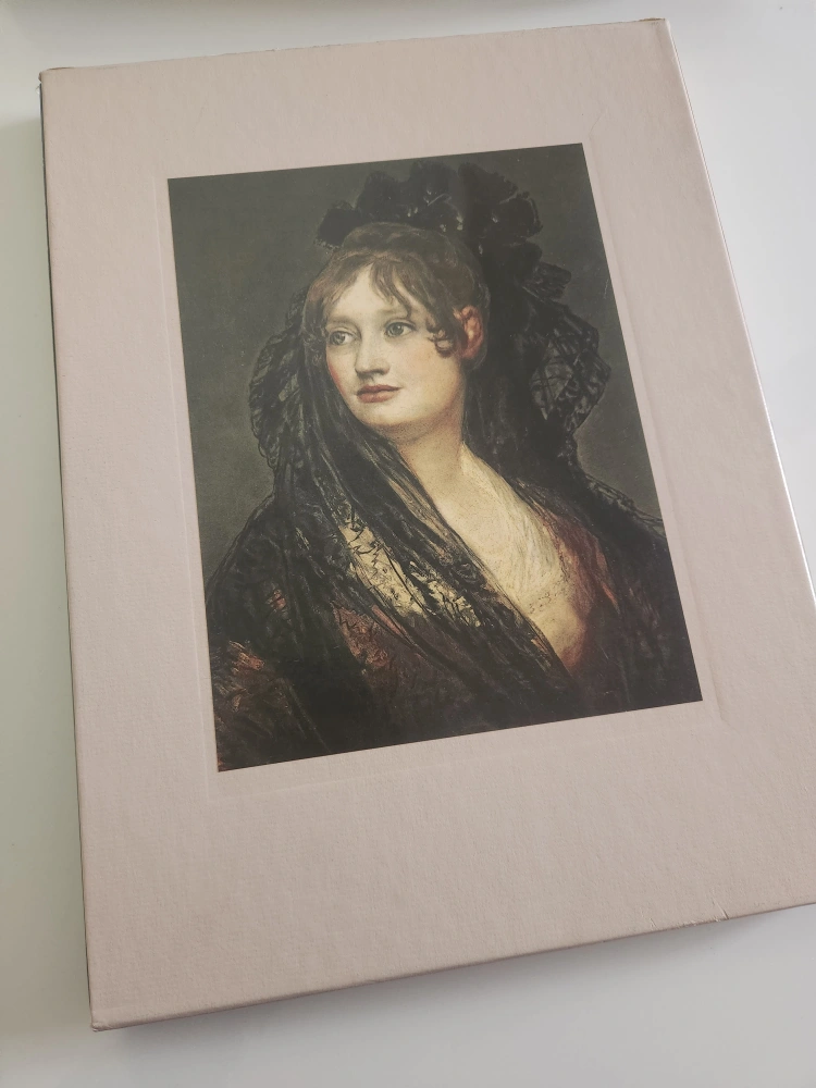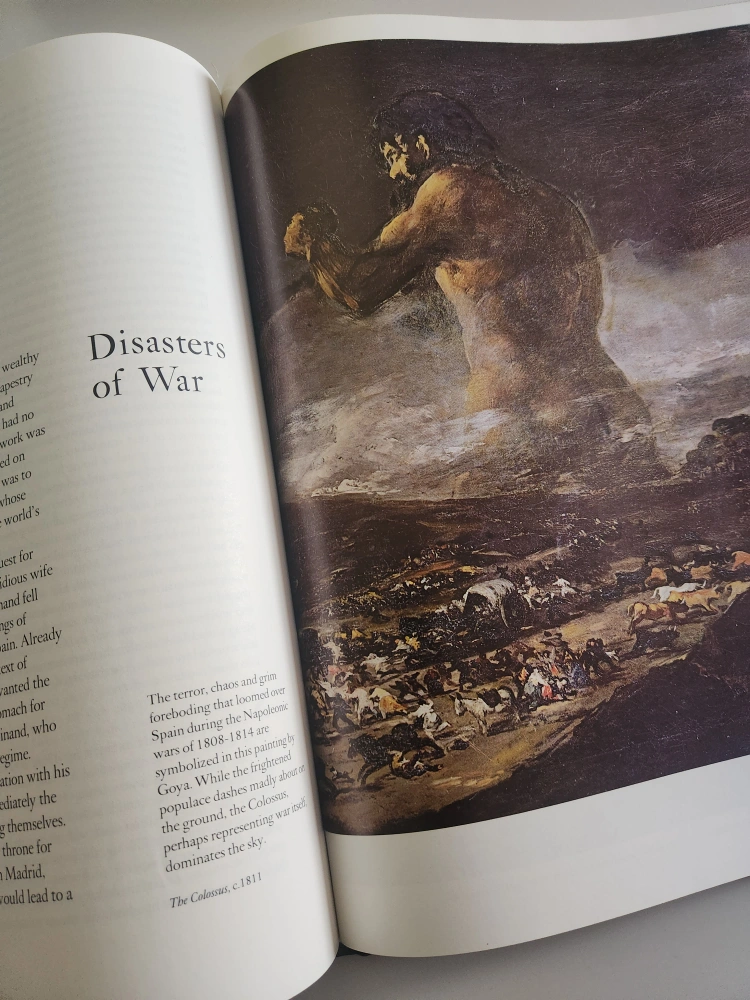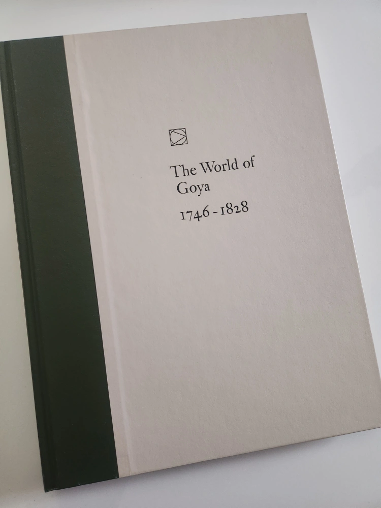 Hardcover book with a green spine, featuring a painting on the cover. It is titled "The World of Goya" and covers the years 1746-1828. Contains many illustrations, including the "Disasters of War" series. 1982