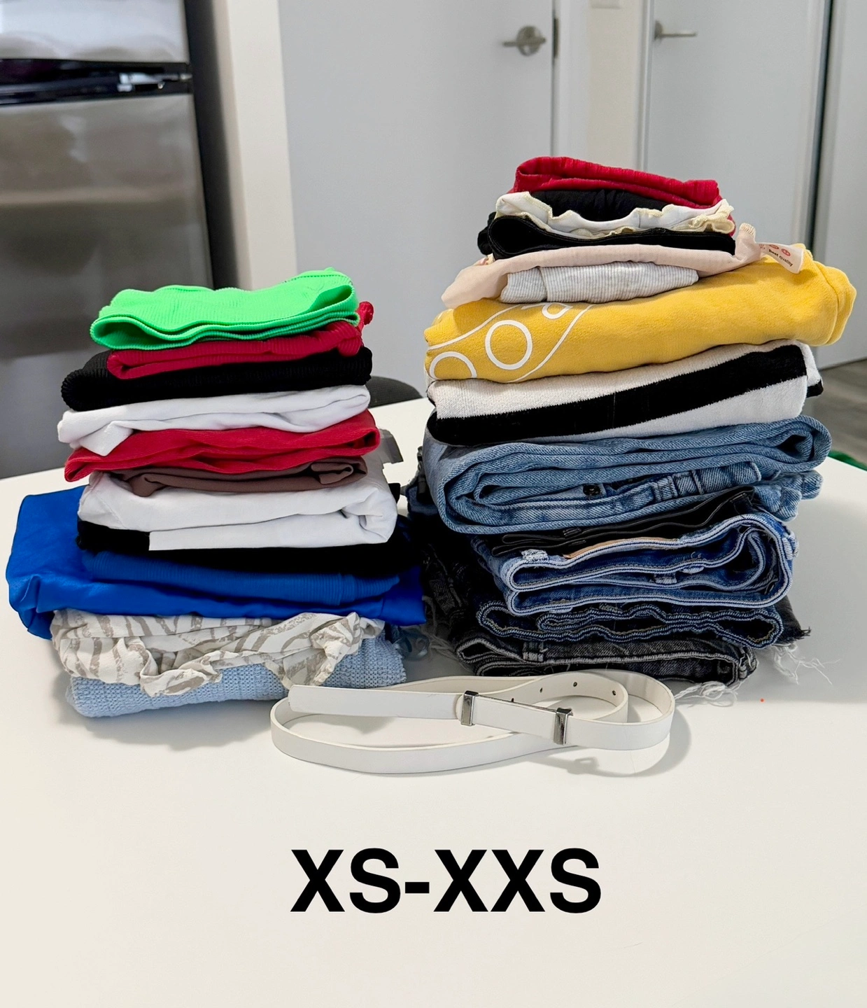 327Bundle of women's clothing, including tops, bodysuits, jeans, shorts, skirts, and dresses. All items are in good condition, some of them were worn only a few times. You can find here Zara, H&M, Primark, FSBN, Monki, Pretty Little Thing, Shein and many others. +10 (they are not on the photos, including 2 new pairs of jeans) Only pickup, please ππ»