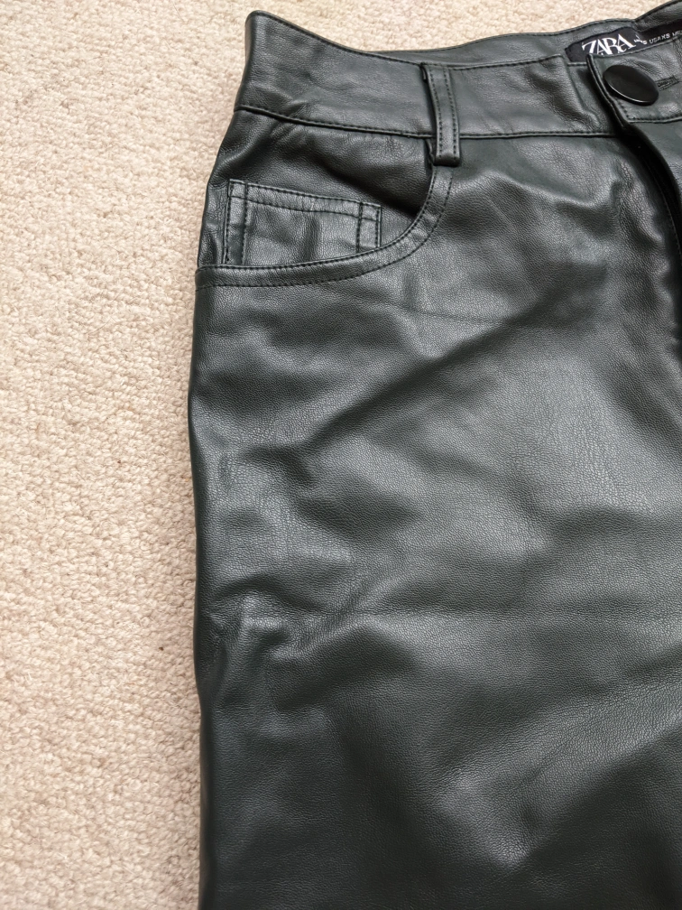 clothing women ladies pants leather pleather vegan green dark Christmas party event style dress pockets moving bundle sale