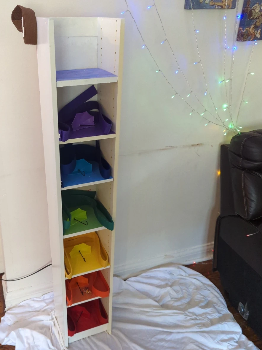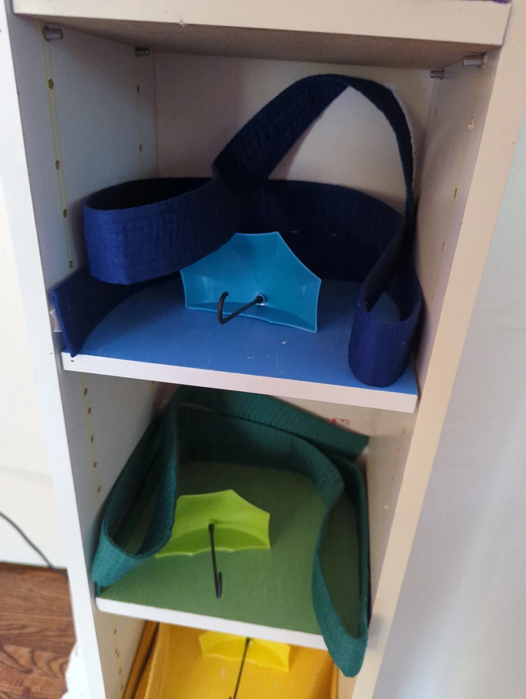 Includes rainbow plastic umbrellas that are originally adhesive wall mounted key holders