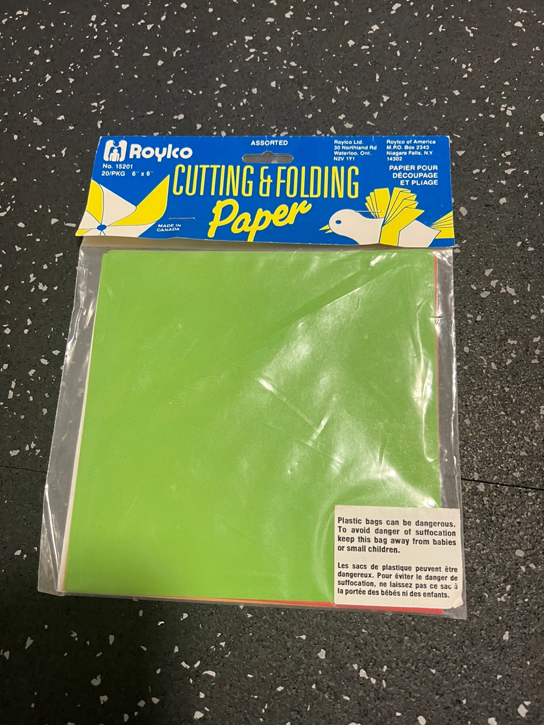 107Assorted colours. 20 sheets. 6x6 inches. Made in Canada. Have fun doing origami!