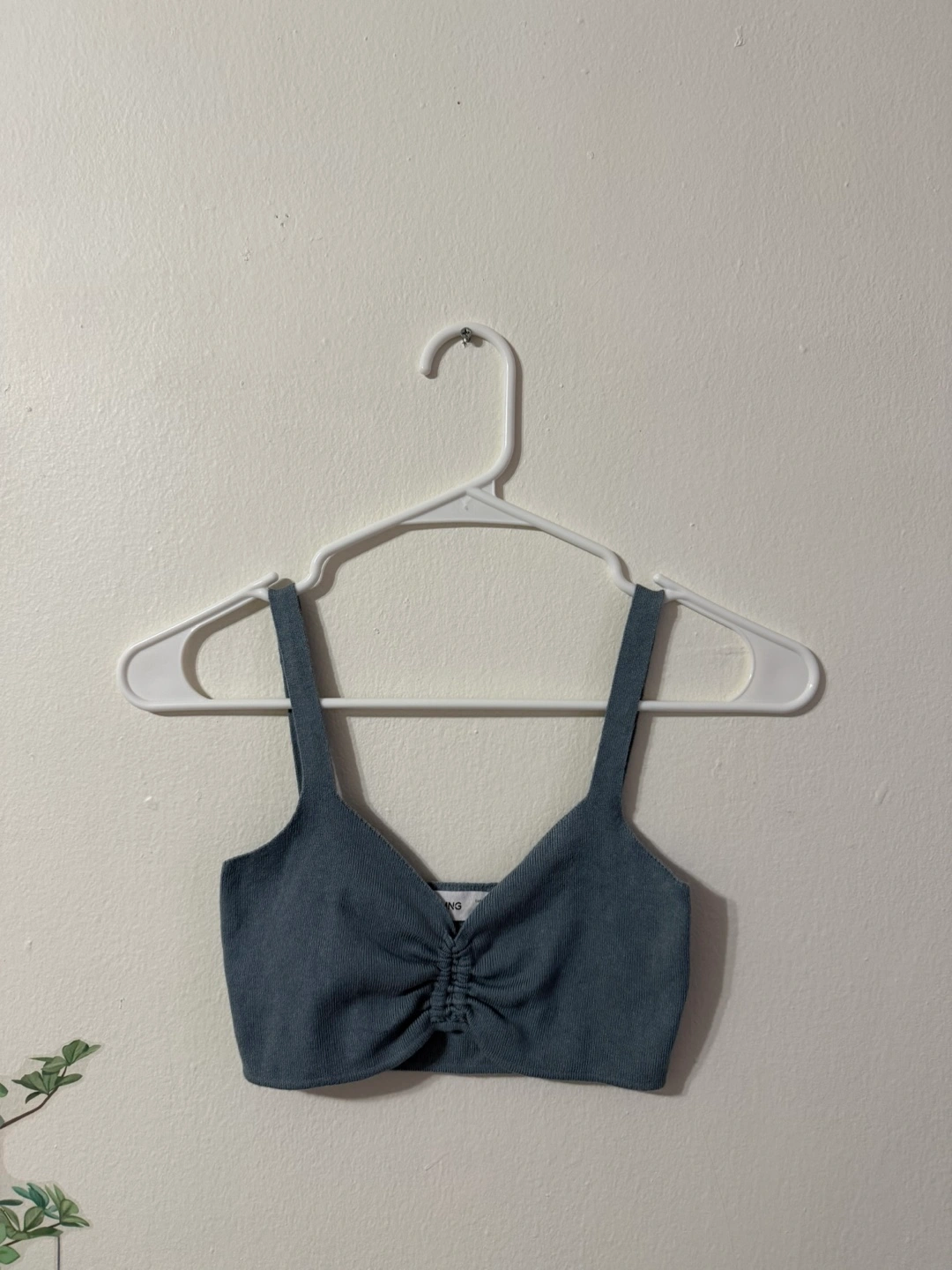 Blue ribbed crop top with spaghetti straps. Still in a good condition Pick up : Elmhurst, US Supermarket OR *Manhattan : 9 Avenue nearly subway (E train 50 st station πŸš‰ ) Cash πŸ’΅