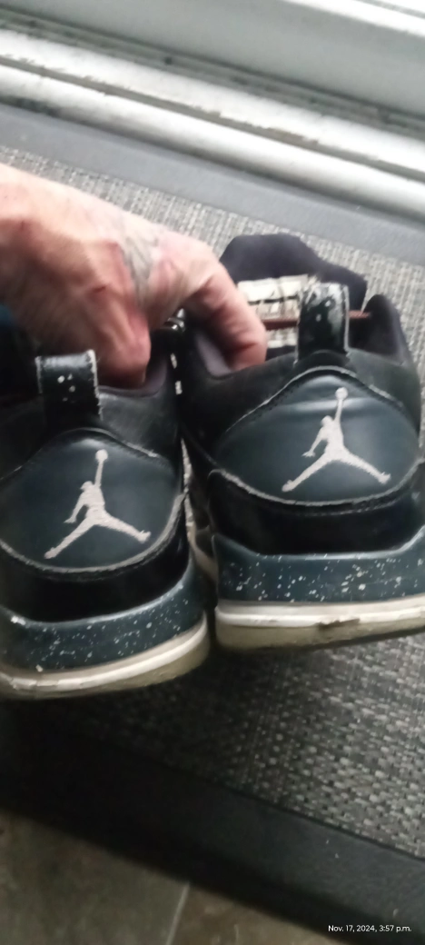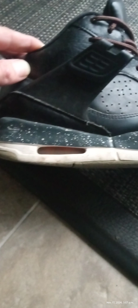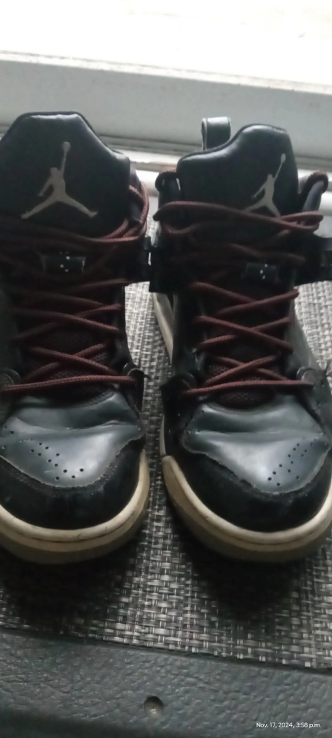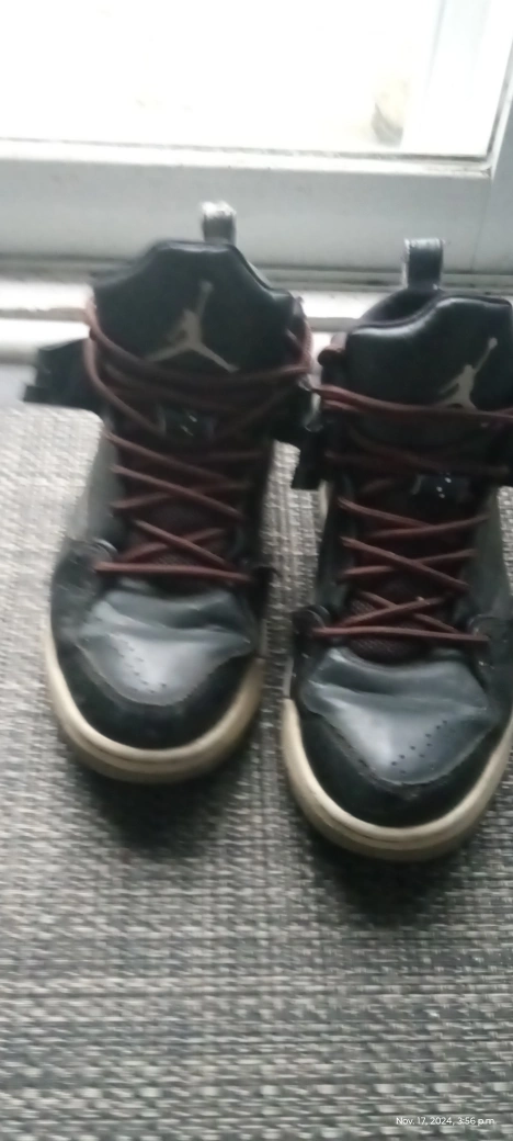 Black leather sneakers with burgundy laces. Size 9 US. Some wear on the soles.