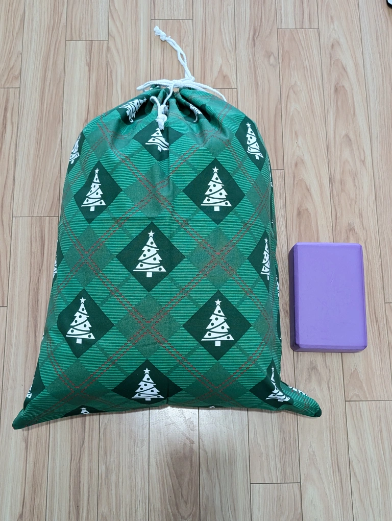 Brand new large Christmas gift bag with white Christmas trees on a green plaid background. Drawstring closure. 60x80cm, can fit 2 pillows!