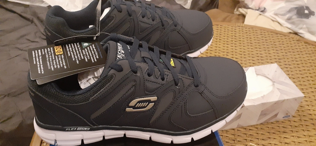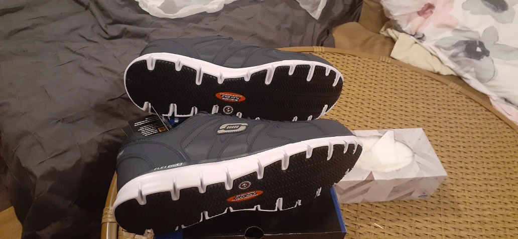 120Men's size 11 work shoes, Navy blue, Slip resistant, safety shoes . originally price $119.99