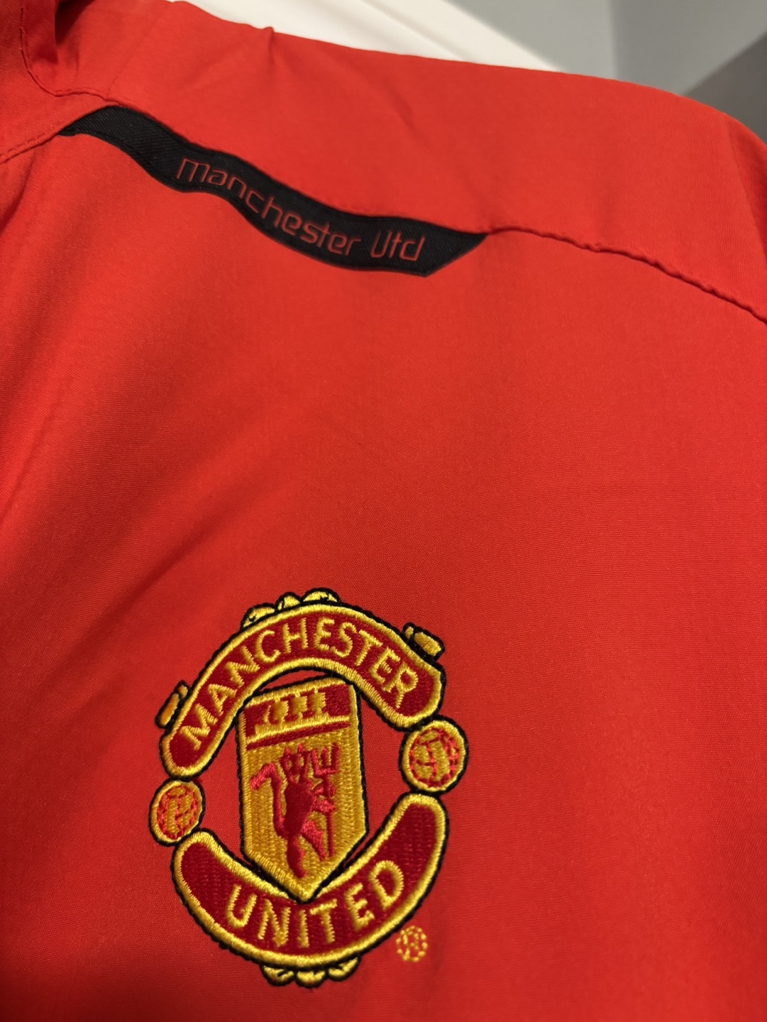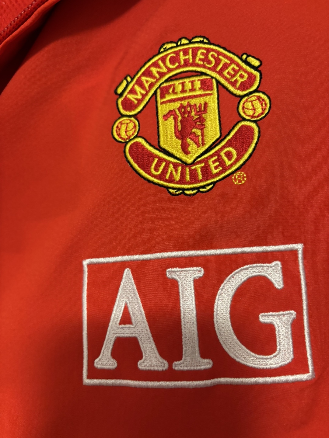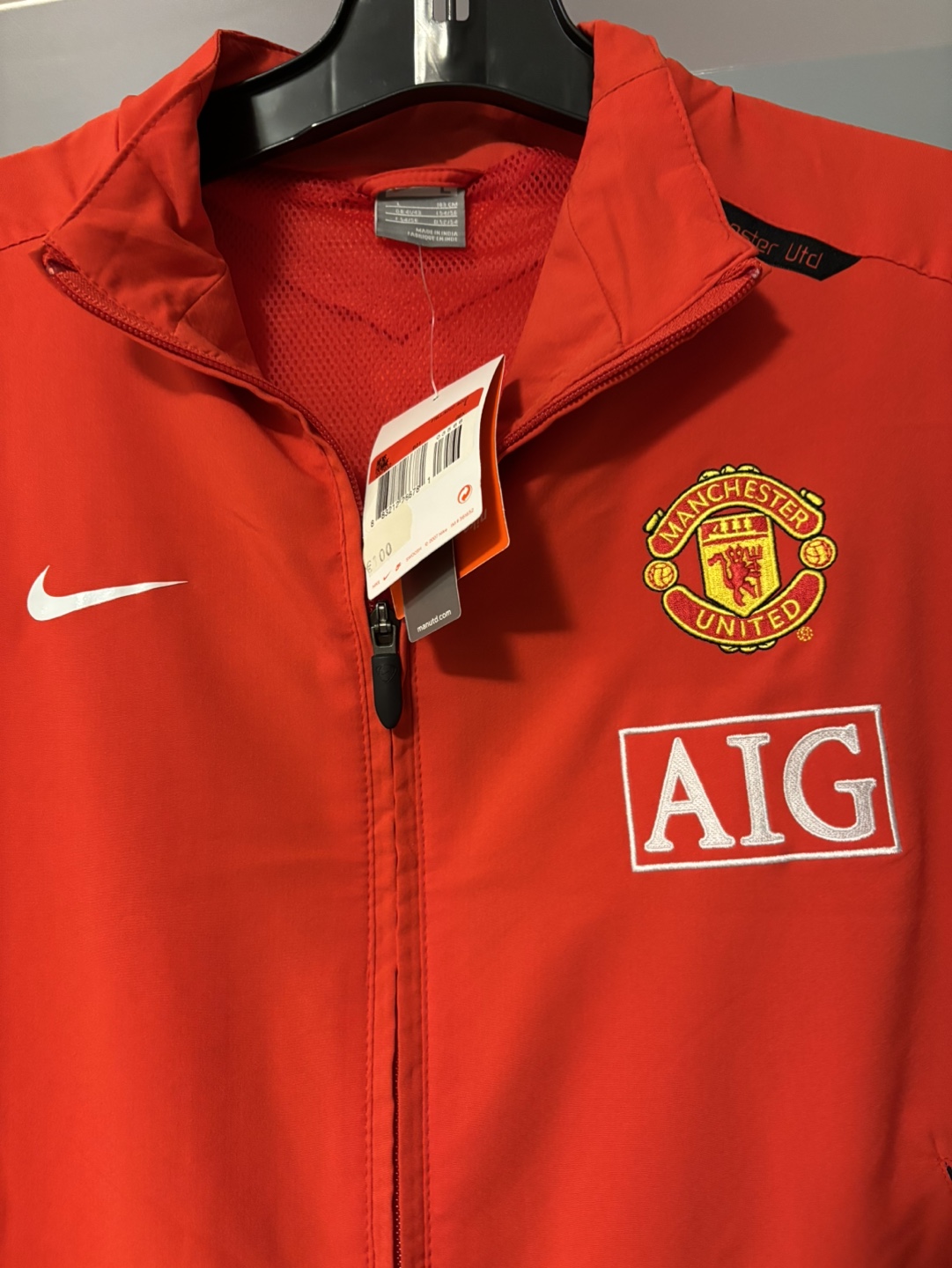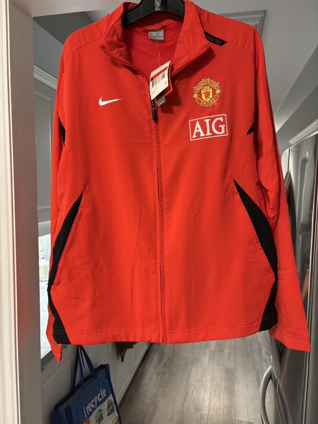 Nike Manchester United track jacket. Size Large. Red with black accents. AIG sponsor.