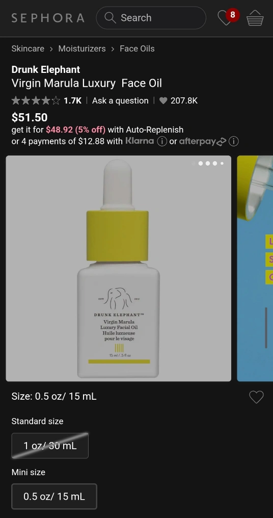 8ml travel size, super handy and convenient for any upcoming trips or if you want to try out the product for cheap before you commit 💸 to the regular size. Never been used!