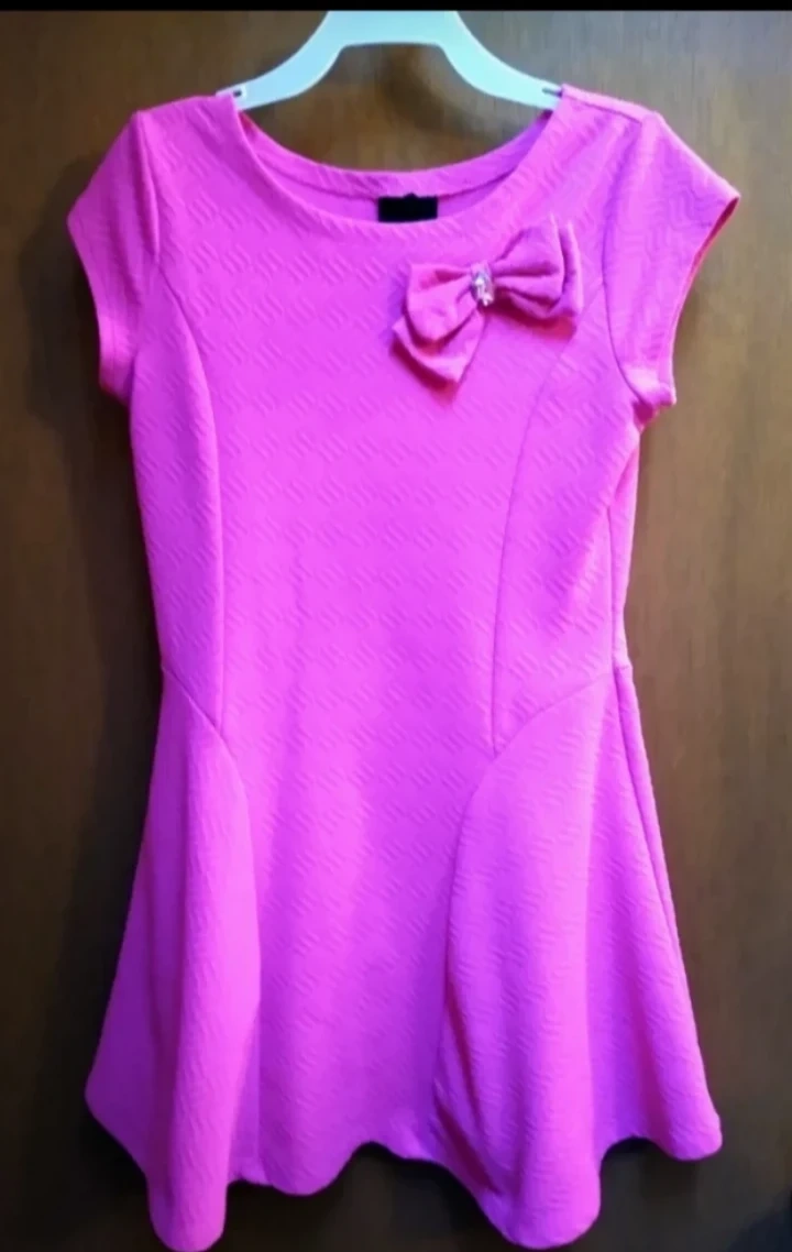 Girl's fushia pink dress size 6 - 6X features bow with jewel. It's super cute and in excellent condition.