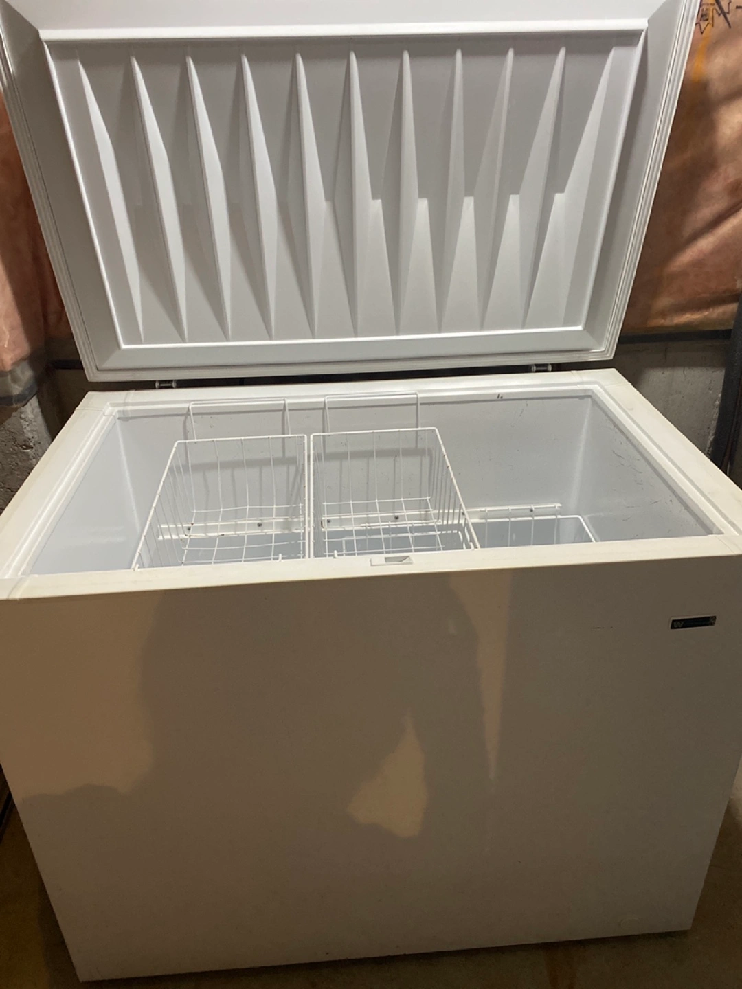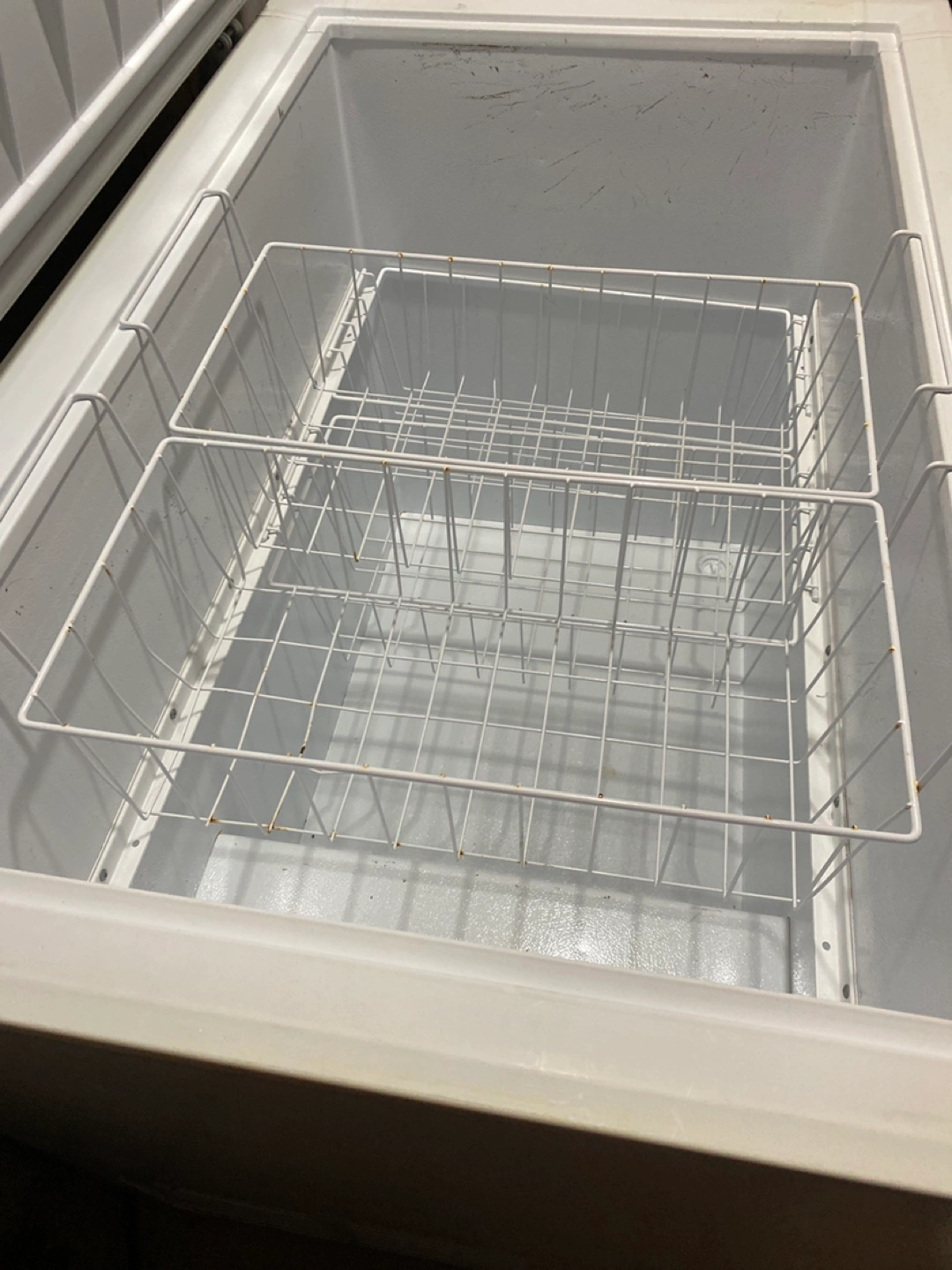 Chest freezer with two wire baskets. Good condition. Needs a good cleaning.