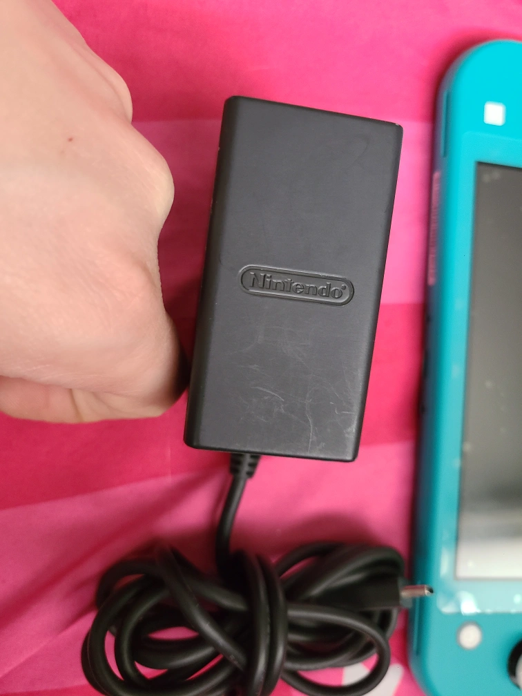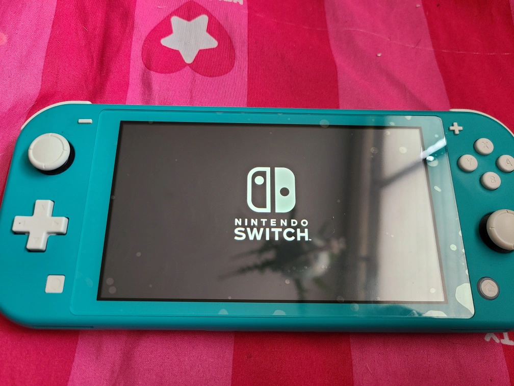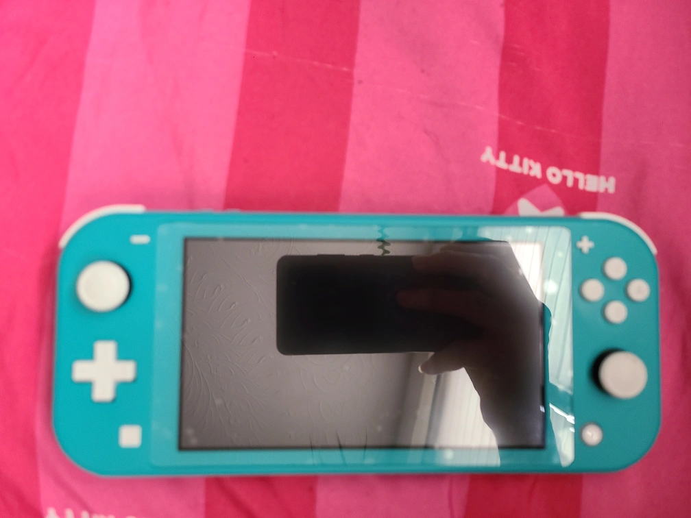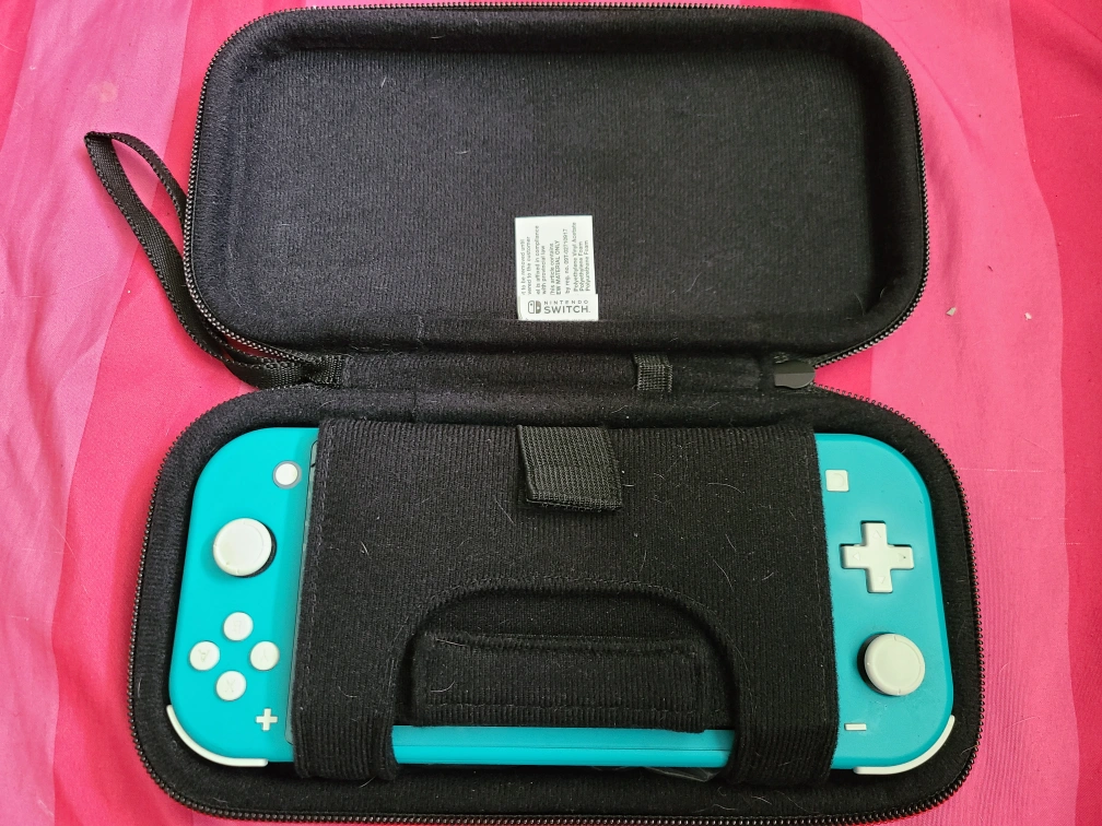 Turquoise Nintendo Switch Lite console with carrying case. Includes charging cable. Barely used, factory reset and ready to be set up.