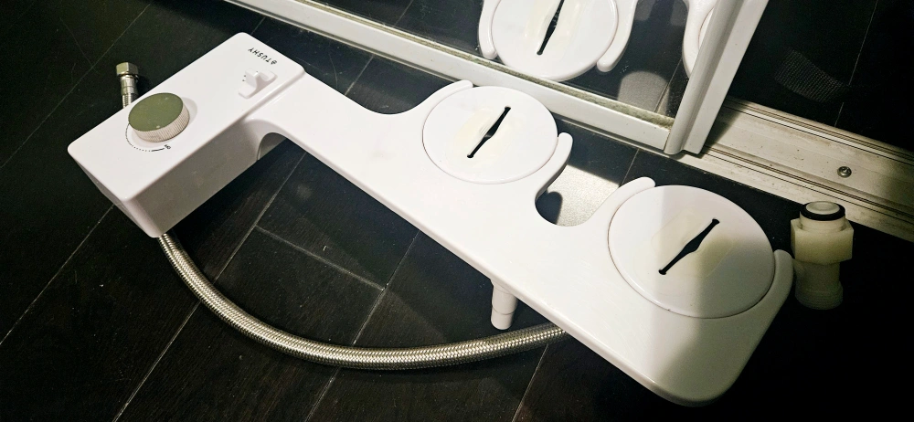 White Tushy Classic 3.0 bidet. Includes all parts. Minor discoloration - see pics.