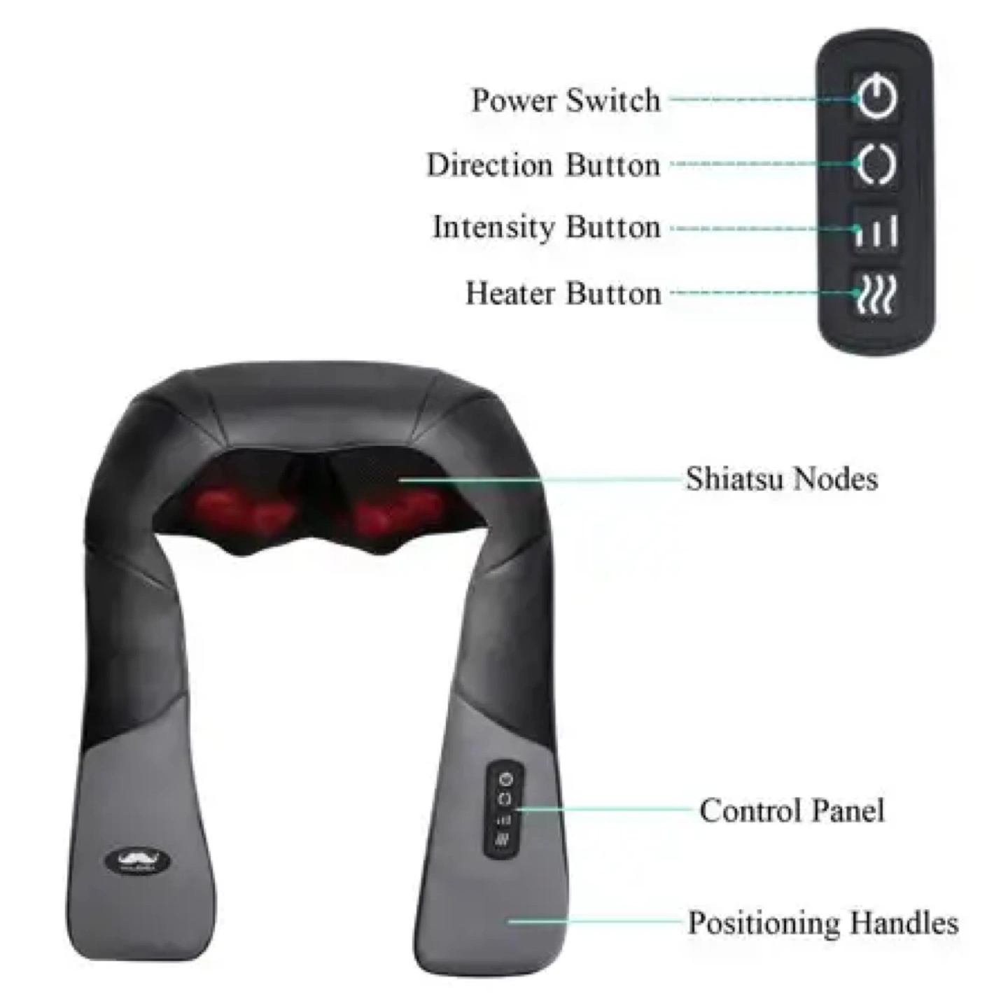 Moustache Shiatsu Neck Back Shoulder Kneading Massager with Heat Neck and shoulder pains can take its toll on your well-being. Neck stiffness can be caused by general wear and tear from bad postures and poor sleeping conditions. Anxiety and stress can also be leading factors for tension in neck muscles. Our Moustache Neck and Shoulder Massager with heat and timing is the perfect way to help relax and relieve your stiff muscles.