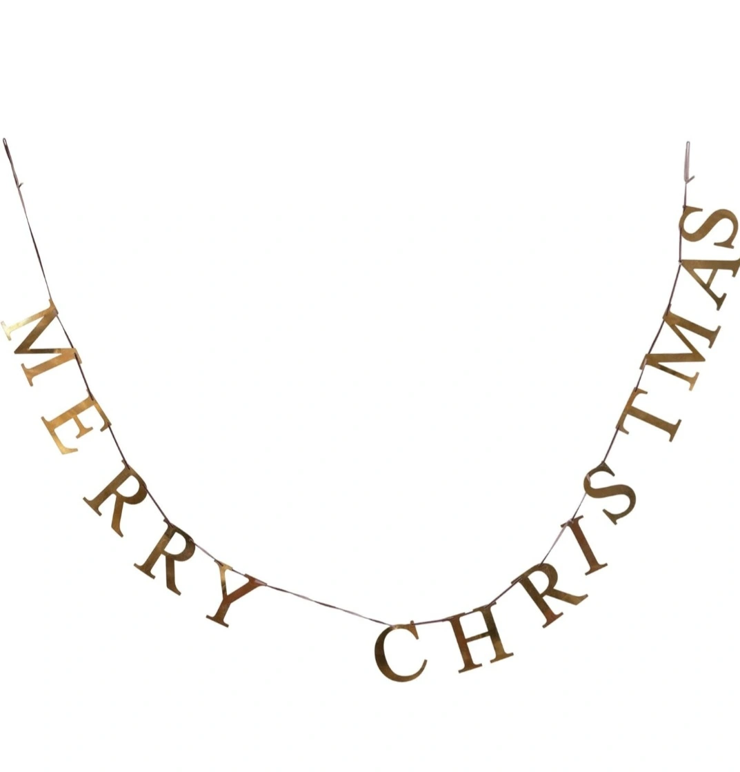 This beautiful rustic Brass Merry Christmas banner, metal garland. Great for festive decor on your holiday table, fireplace mantel, and wall.