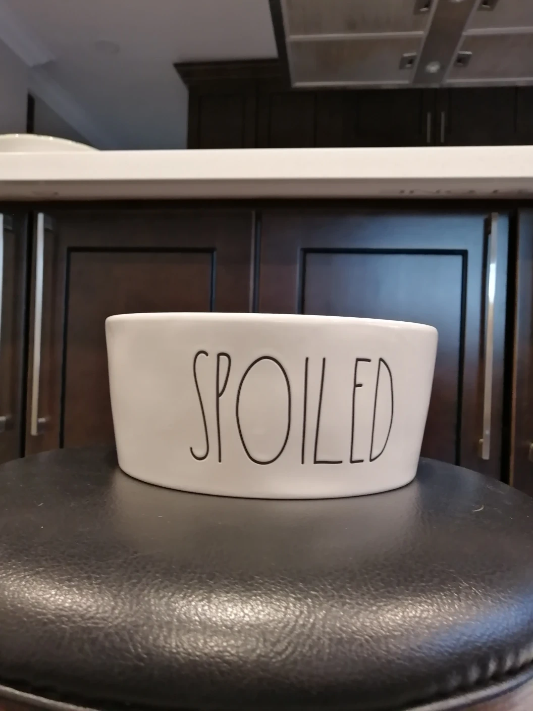 Brand New Rae Dunn by Magenta White ceramic pet bowl with black lettering that says "Spoiled", size Large.