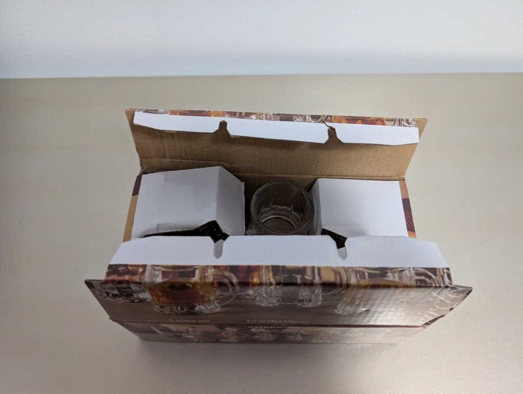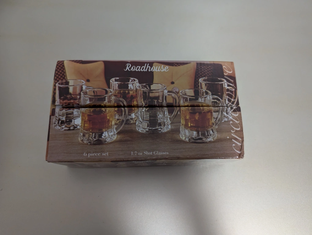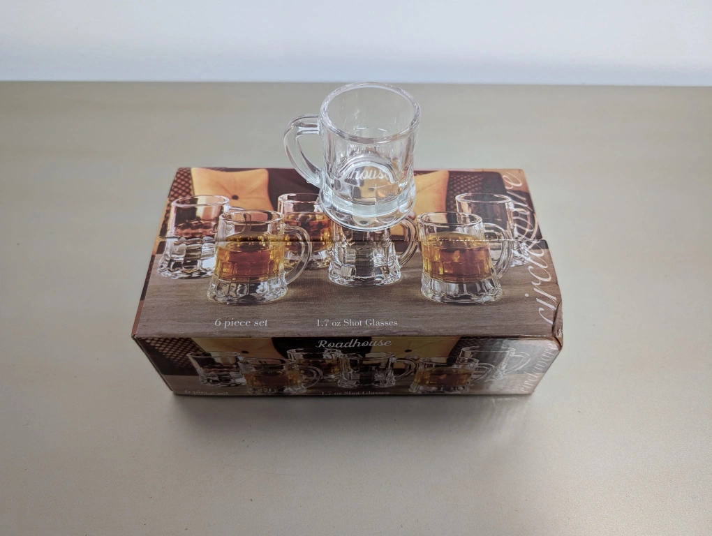213Set of 6 shot glasses in a box. Each glass is 1.7 oz and has a handle.