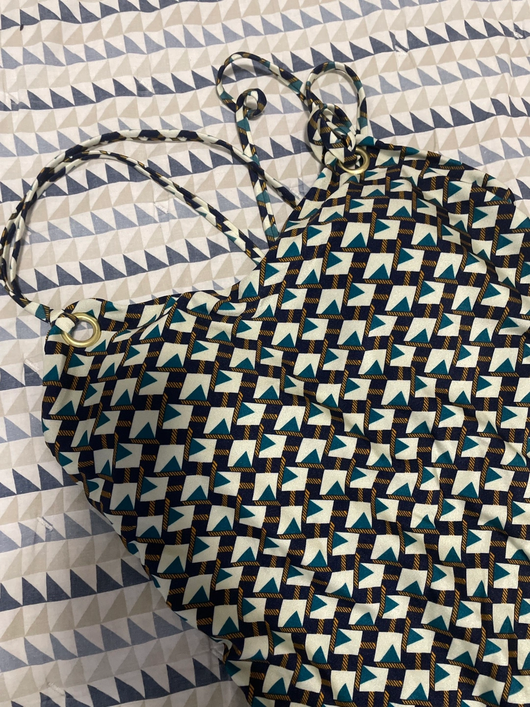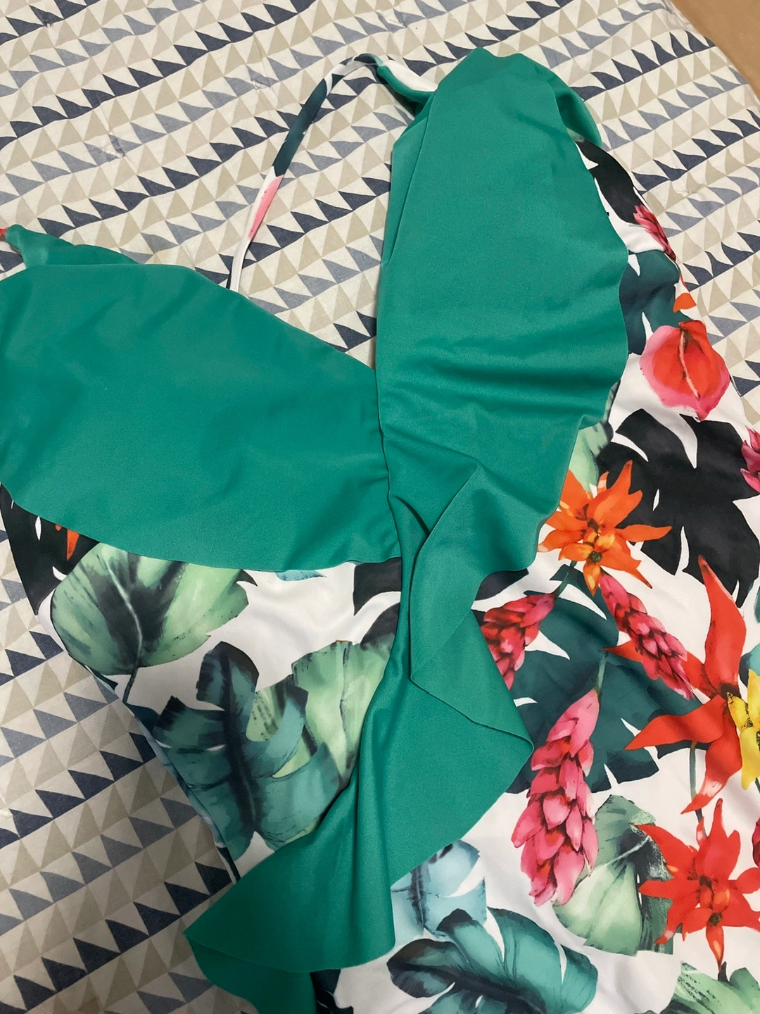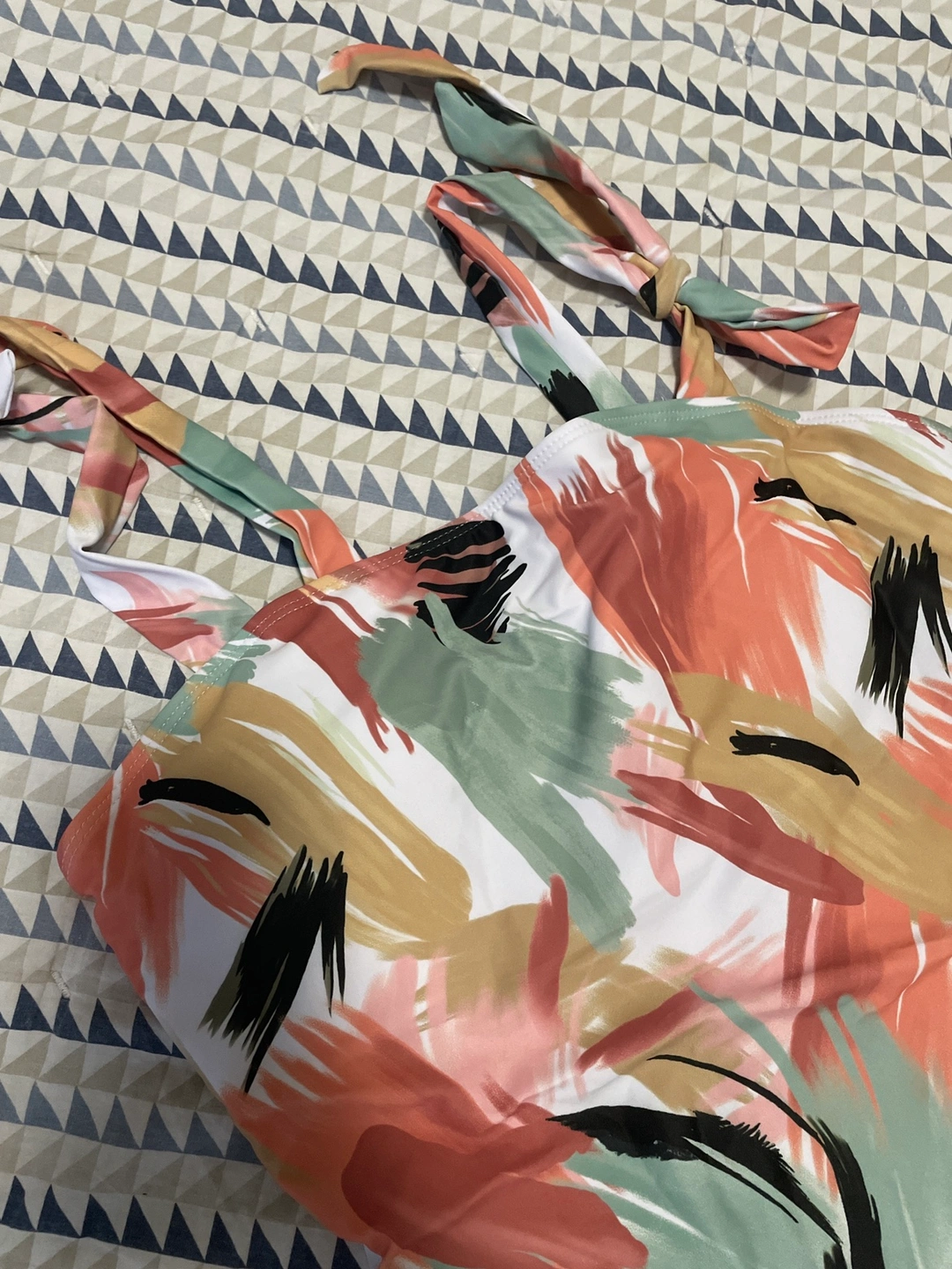 New swimsuits, all are marked as L size, but white one with abstract print is more like XL.
