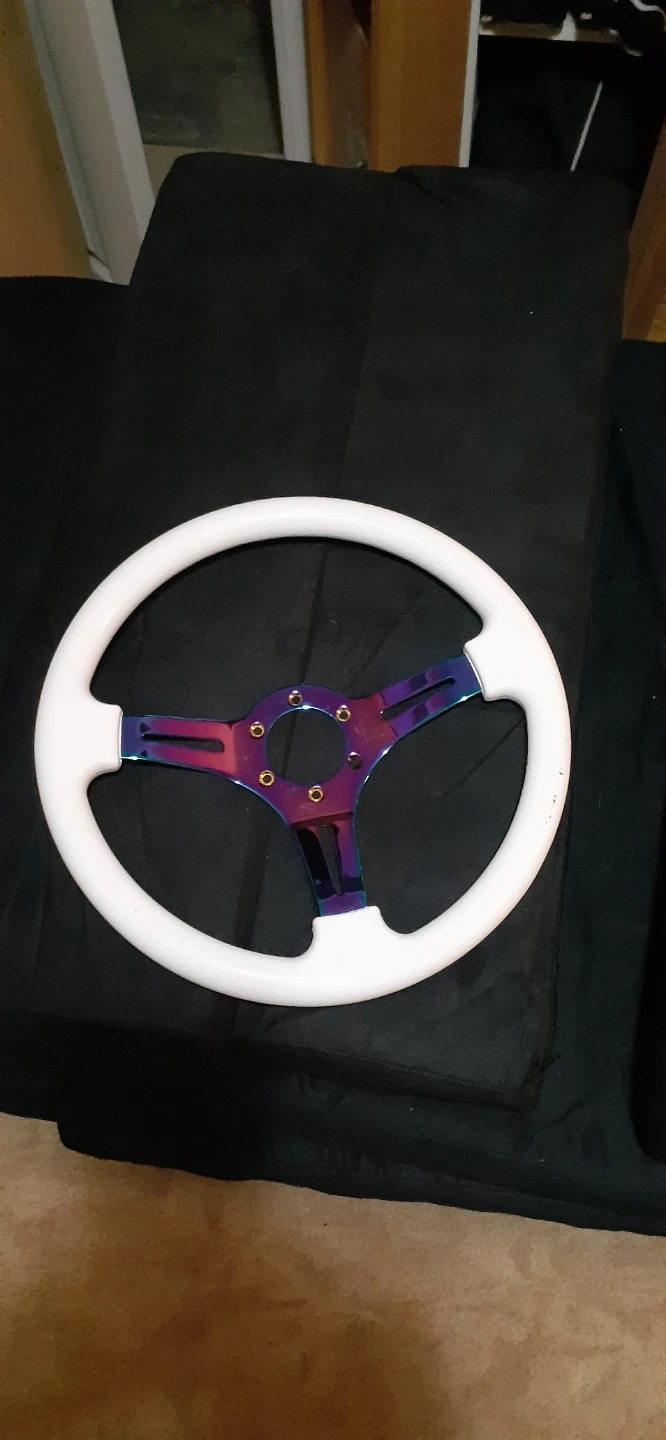 White Steering Wheel with Rainbow Spokes