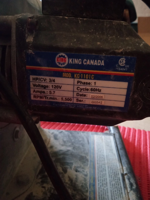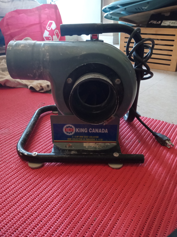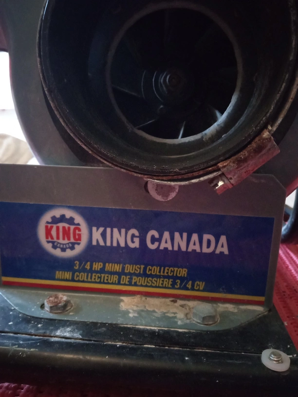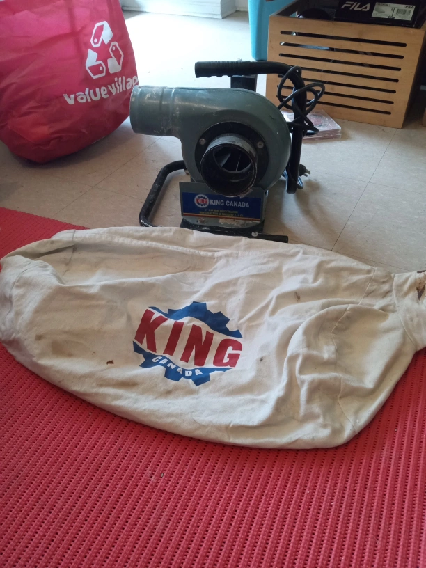King Canada dust collector, 3/4 HP, 120V, 5500 RPM. Includes dust collection bag.