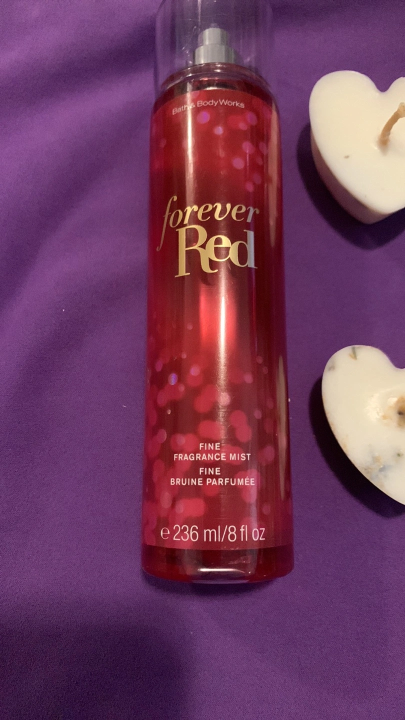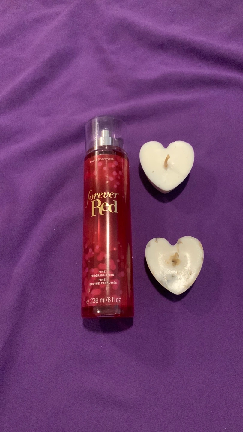 Bath & Body Works Forever Red fragrance mist, 8 fl oz. Never used. Comes with two heart-shaped candles.