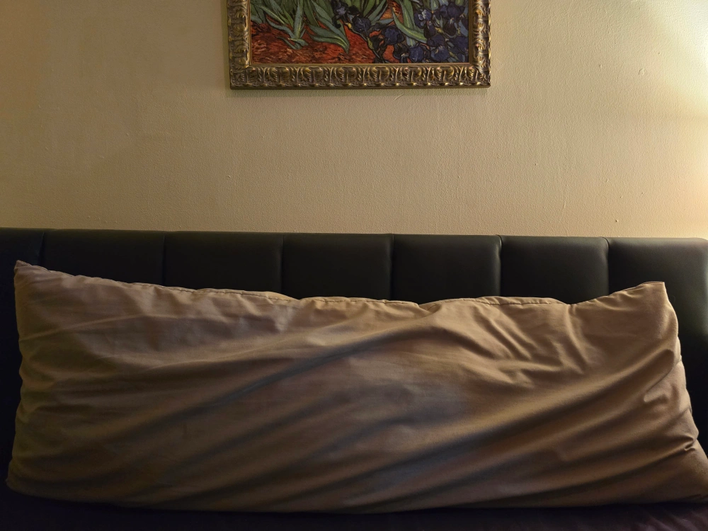 large body pillow with taupe pillow case- used as decor only