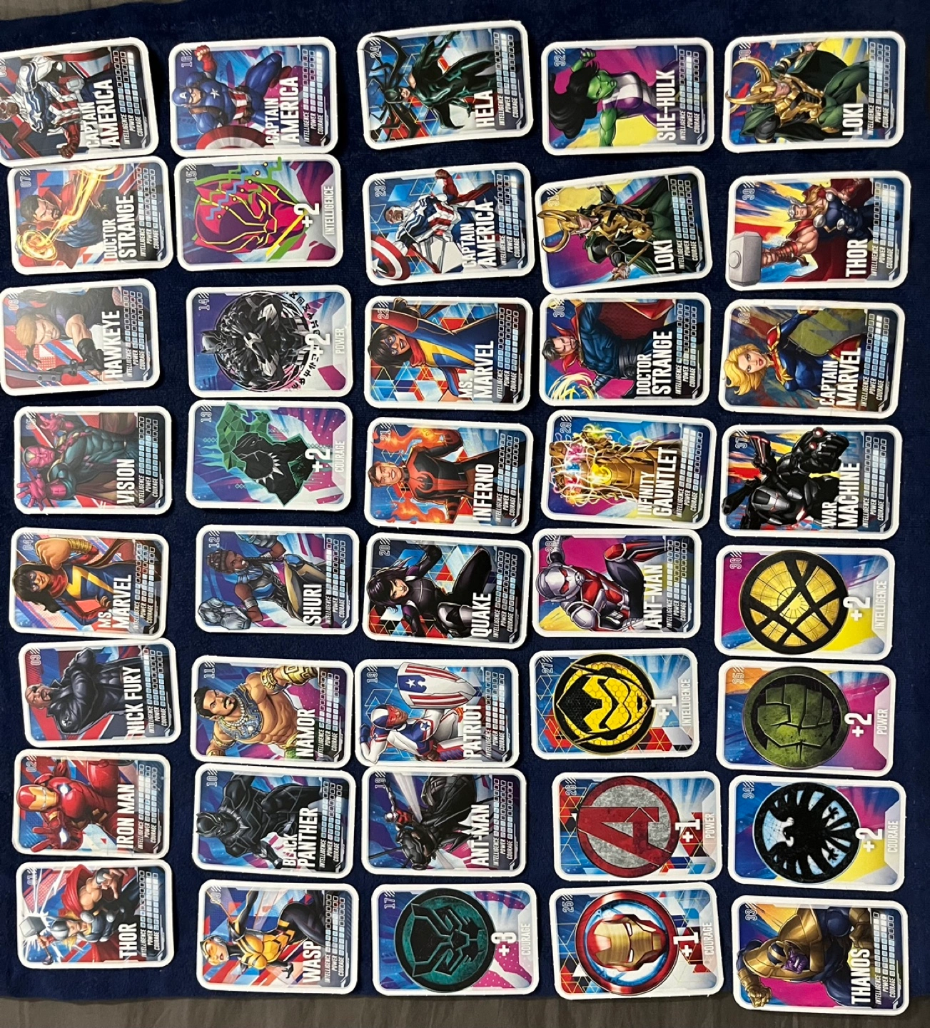 Complete set of cards for the Marvel Dice Masters game. All cards are in excellent condition. 50 buck for one full set. Only 2 sets available.