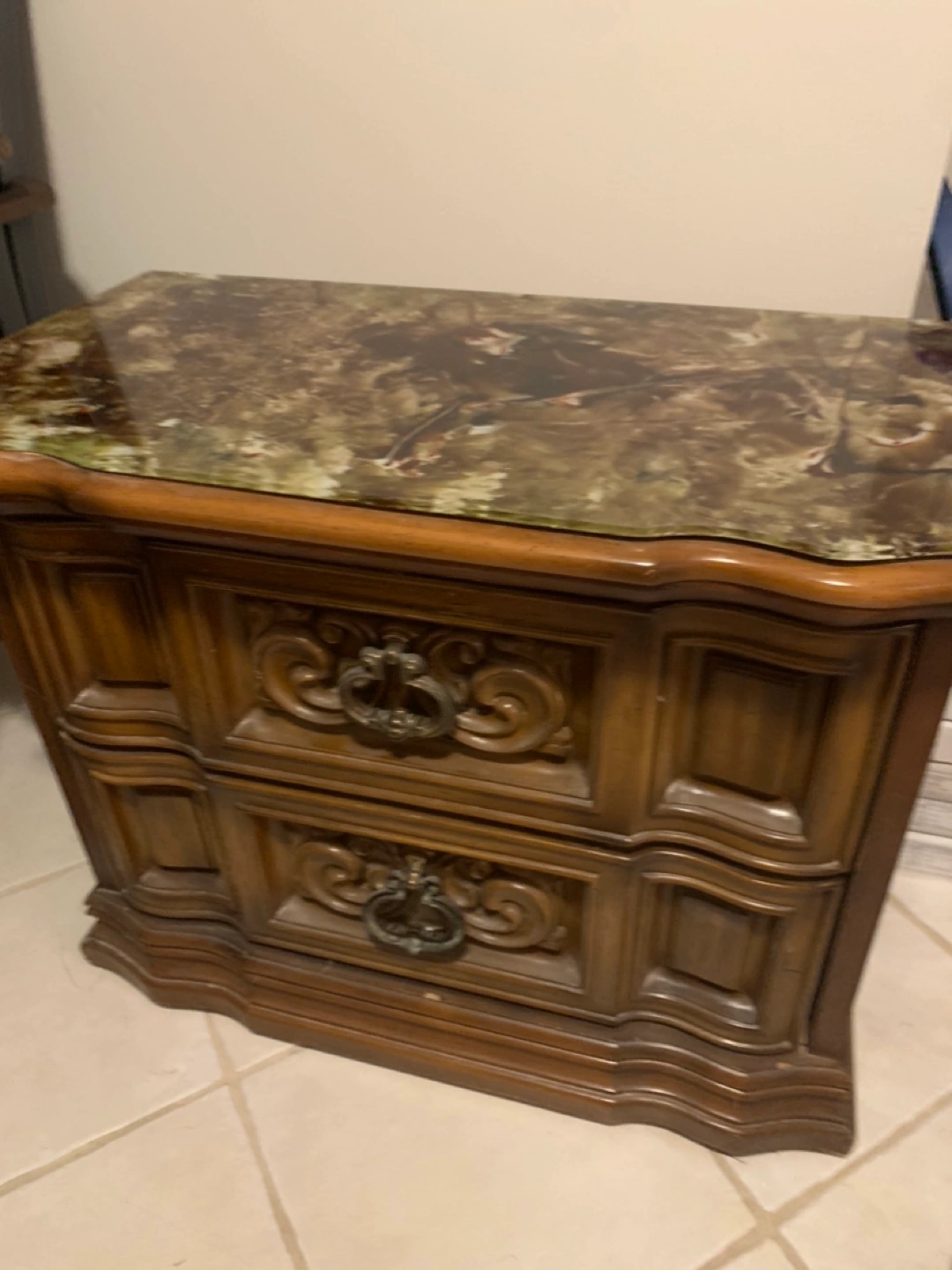 Buy & SellVintage Wooden Nightstand with Glass TopVintage Wooden Nightstand with Glass Top$45Two-drawer nightstand with a glass top. Has ornate carvings on the drawers.0 chats·0 favorites·34 viewsSELLERLauraMaple644 reviewsWHERE TO MEETTim Horton’s - Keele and Rutherford in Maple