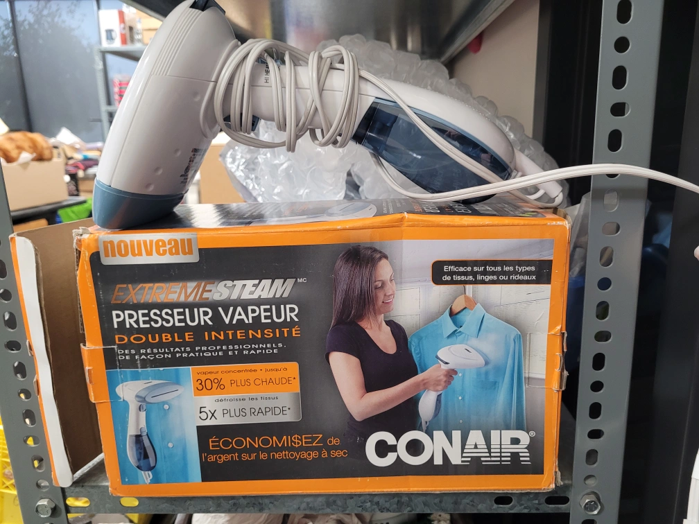 Used Conair Extreme Steam fabric steamer. Double intensity pressure vapour. 30% hotter, 5x faster. i have 2 units here pick anyone, price is per each. Must pickup. Please. no etransfer or long holds. this is a cash price. bring cash. This is in storage and I will meet you there. I can access the building during 8 to 430 Monday to Friday. No one is there outside of those times.