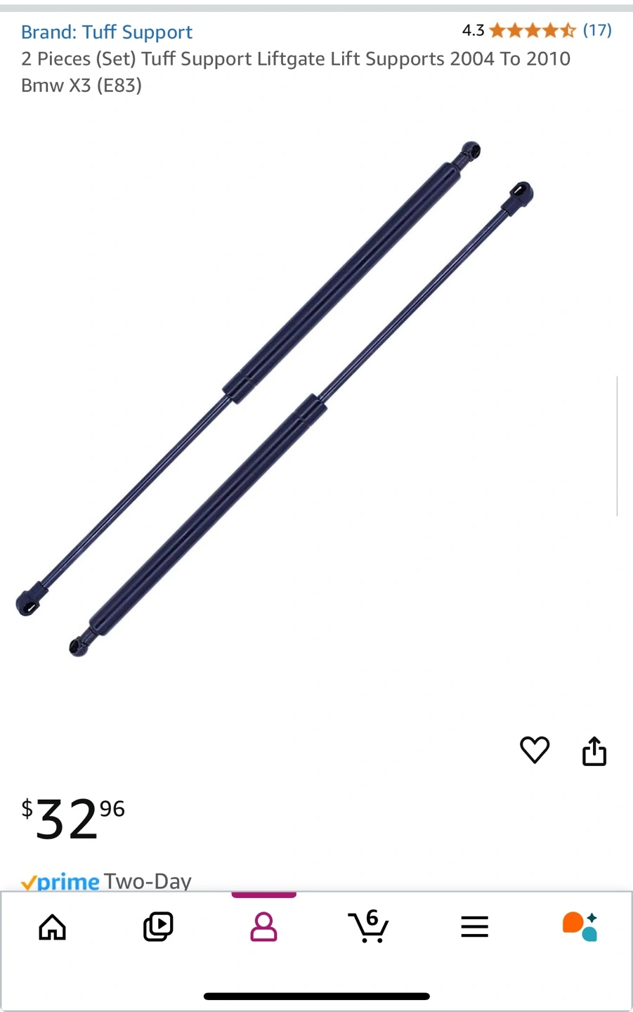 Two new Tuff Support Lift Supports in original packaging. Part number 610855. Closet cleaning pulling out holiday stuff and remembered I still had these. Originally bought for $41, never used. 2004-2010 BMW X3