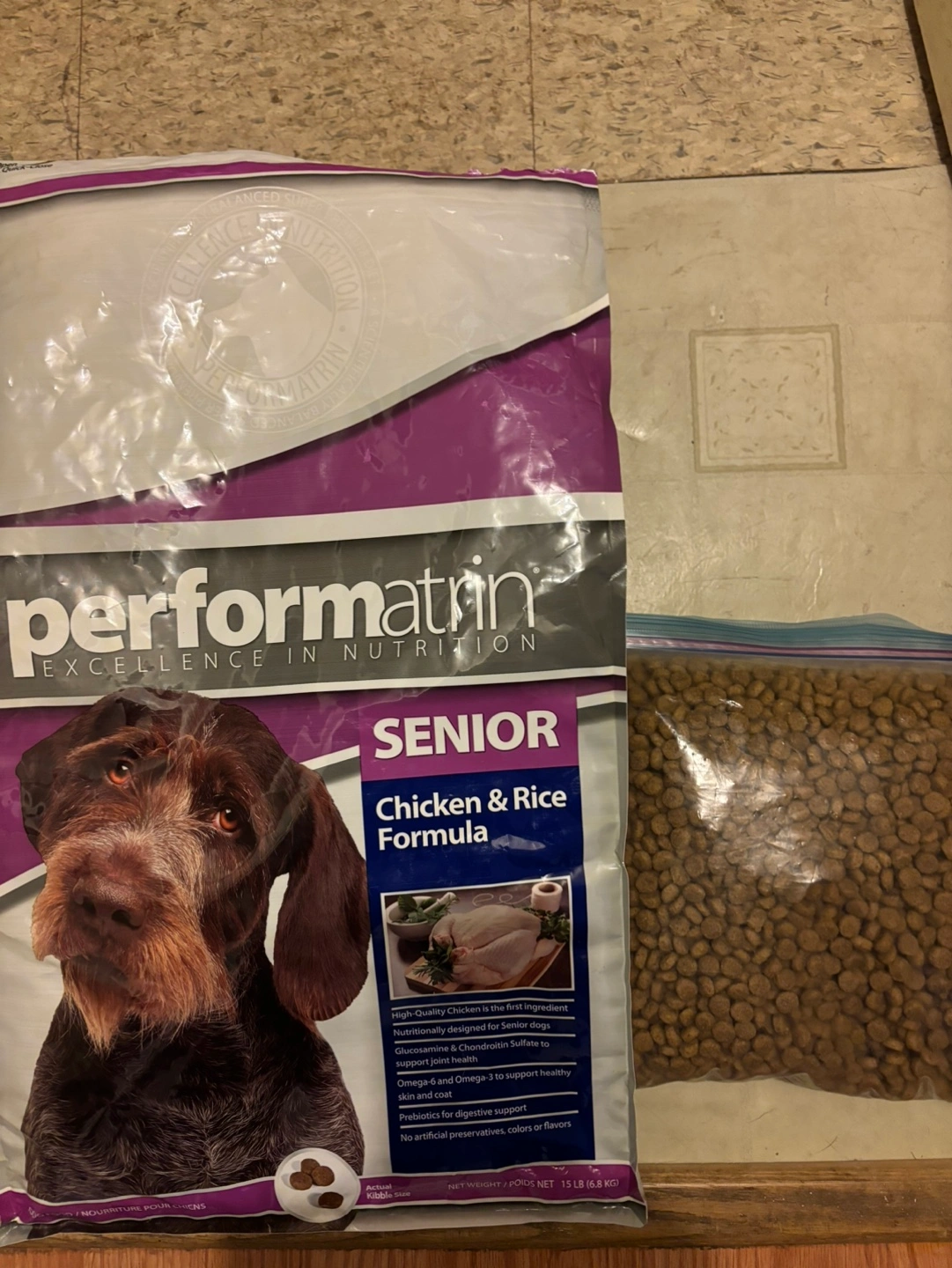 I have 2 ziplock bags (see pic) of this dry dog food to give away for free. If you need for your pet at this time or to pick up for yourself and/or those in need. Includes glucosamine and chondroitin sulfate to support joint health. Omega-6 and omega-3 to support healthy skin and coat. Prebiotics for digestive support. No artificial preservatives, colors or flavors.