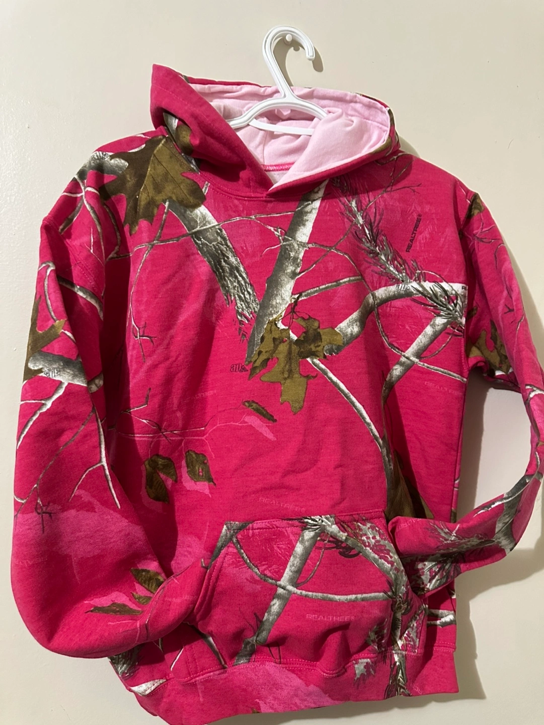 Pink RealTree camo hoodie, long sleeve, kangaroo pocket