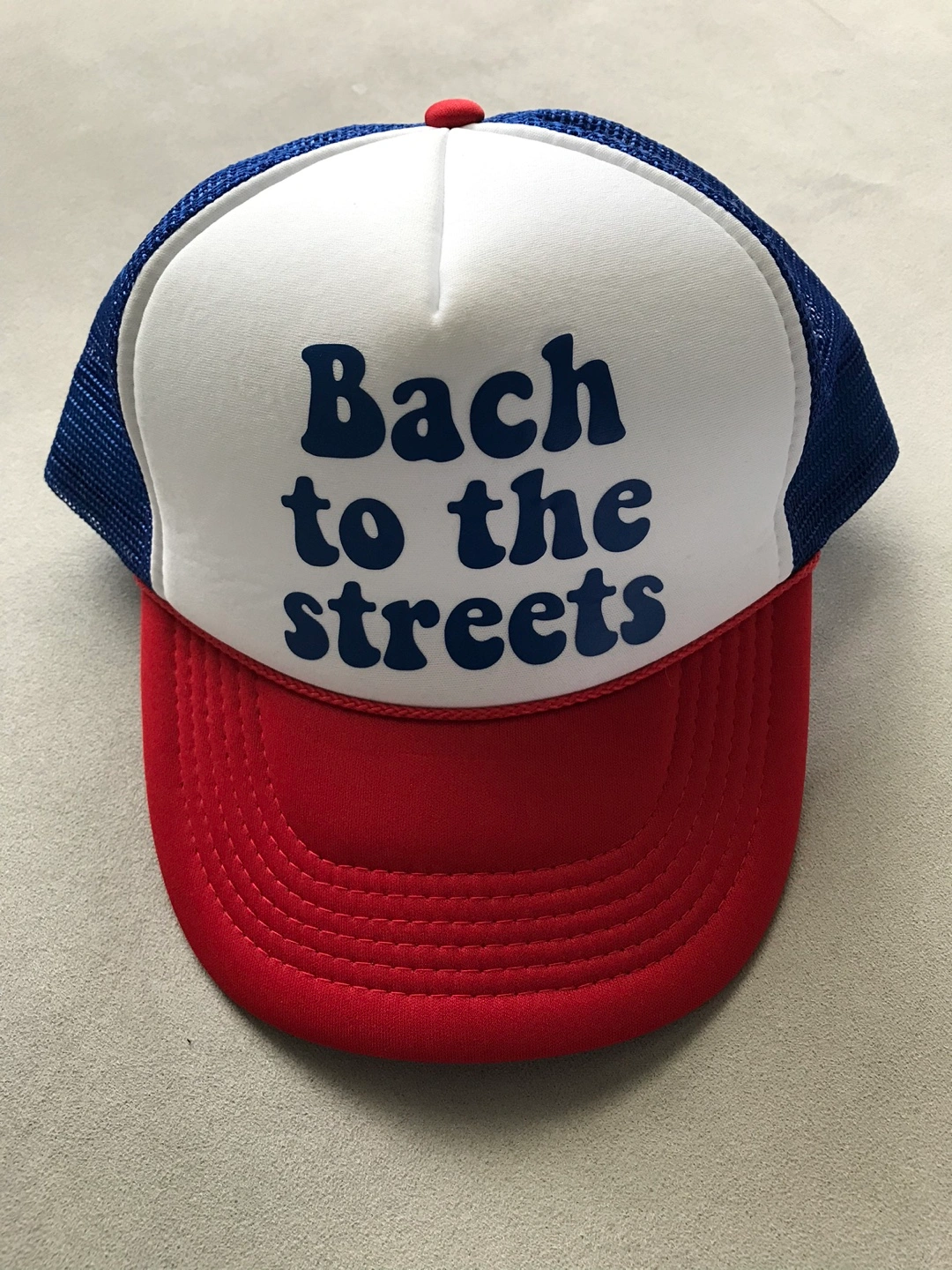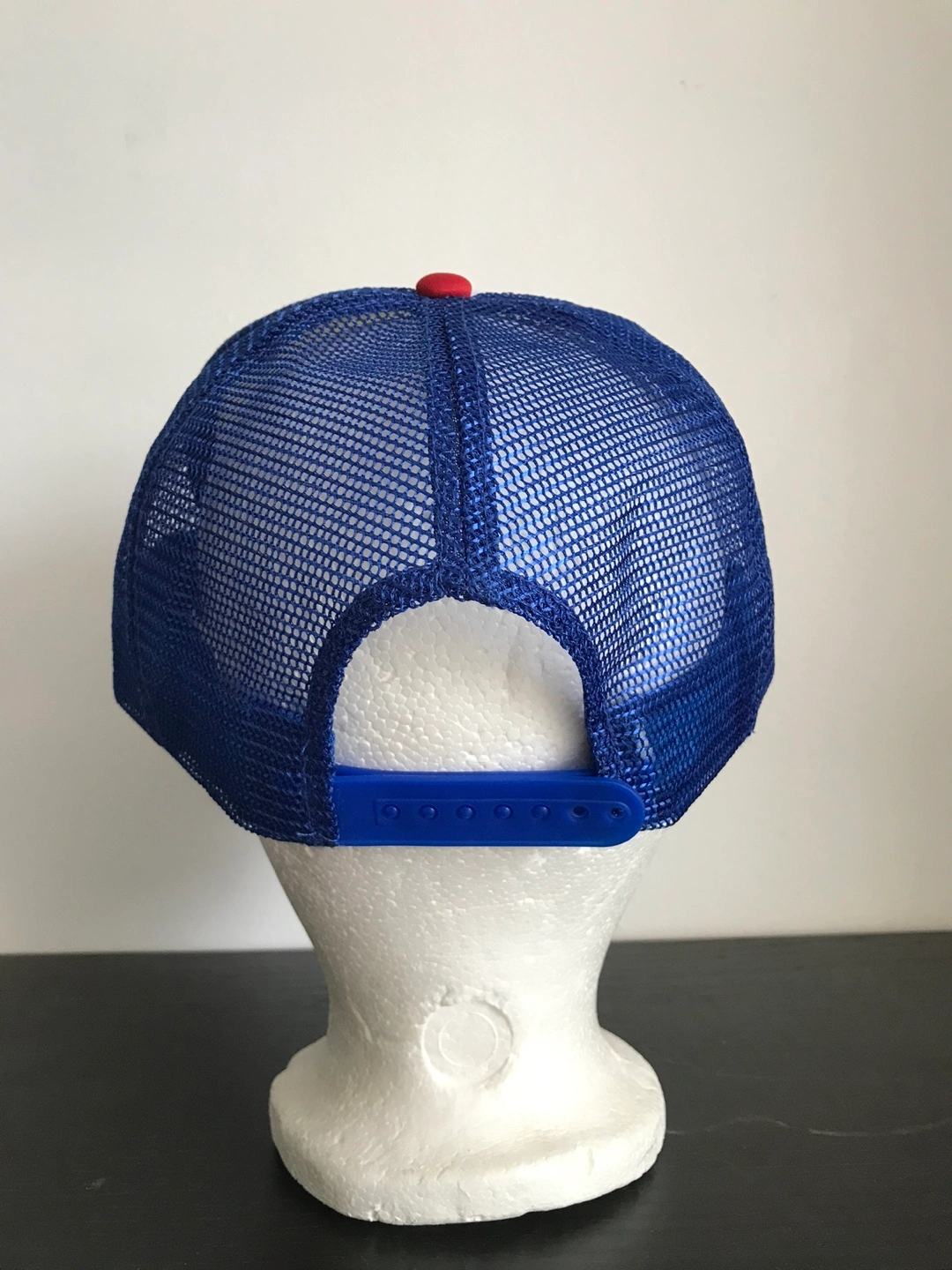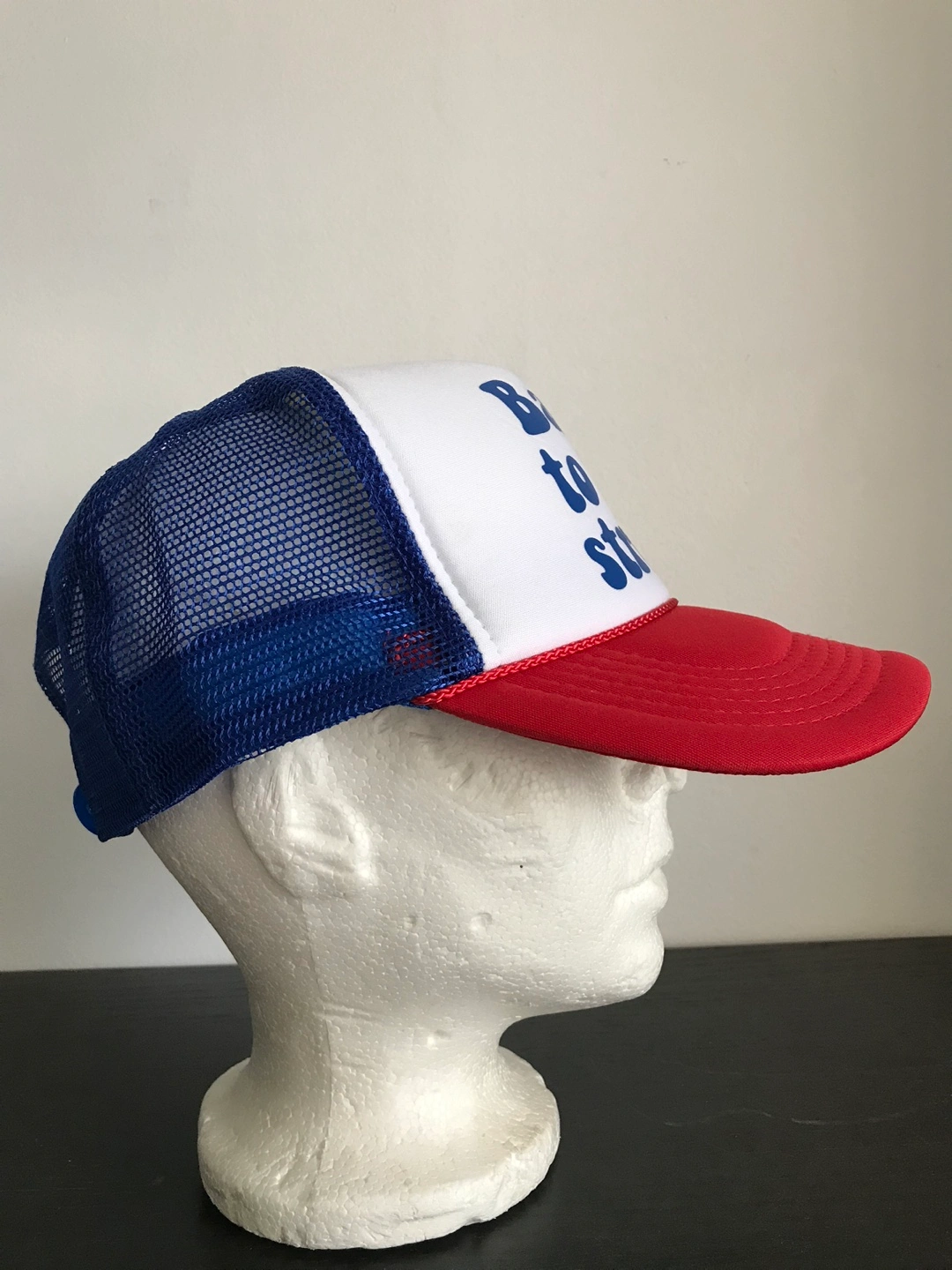 165Red, white, and blue trucker hat with mesh back. Adjustable snapback closure. 'Back to the Streets' written in blue on the front. Vintage All sales final. Curbside pick-up Woodbine and Gerrard
