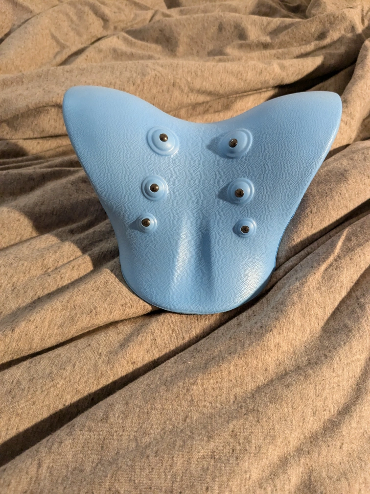Blue acupressure neck and shoulder massager. Features raised nodules to provide a stimulating massage experience.